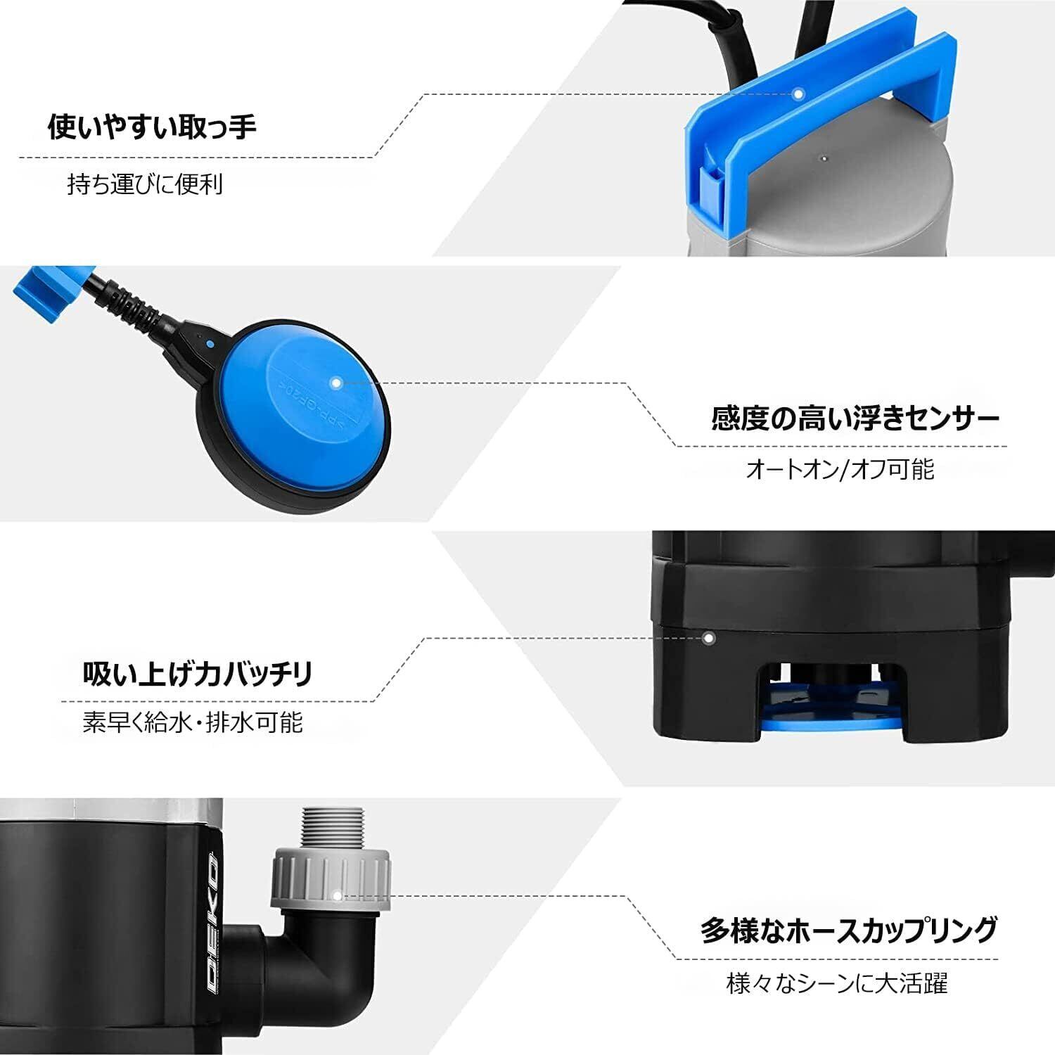 【強力な汚水ポンプ】DEKO家庭用水中ポンプは通販のポンプのない400W、1/2モーターを採用し、吐出量は7500L/H、最大揚程は5mに達し、素早く排水できます。また、 排水ポンプ20㎜の汚れ物も通過可能で、菜園・花壇の散水や池・水槽の水の入れ替えにピッタリ!
