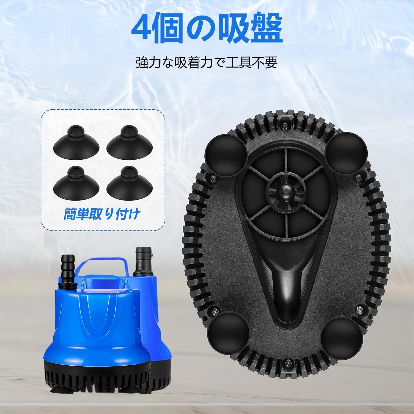 「『水中ポンプ 底部入水式』は、最大吐出量5800L/hを誇り、揚程は5.6mまで対応しています。アクアリウムや亀の水槽、プール、いけす、お風呂など様々な用途で活躍し、スムーズな水の循環を実現します。」