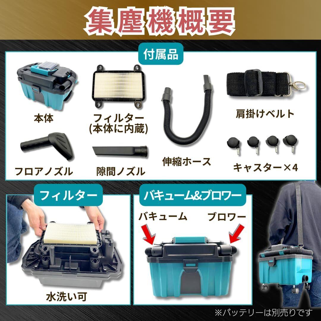 マキタ互換品 集塵機 乾湿両用 業務用 小型 掃除機 集じん機 パワフル吸引 35aw 10L大容量 18V バッテリー 対応 バキュームクリーナー ブロワー機能付 2WAY HEPAフィルター コードレス 軽量3.3kg Longsafe (SYU01-BL) ※本体のみ バッテリー 充電器 別売り (本体)