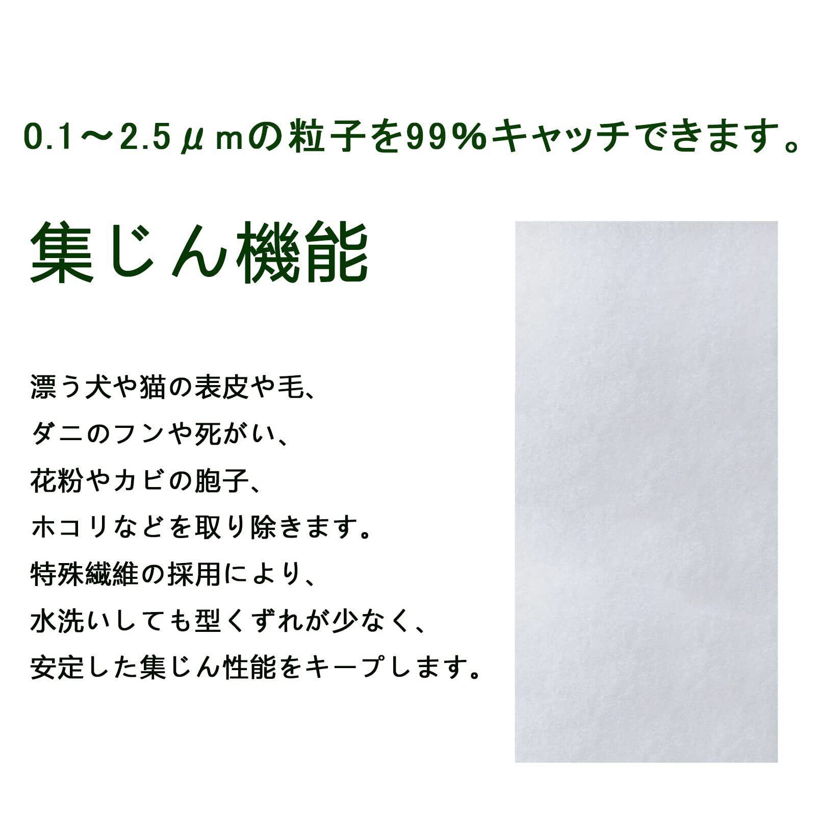 【優れた機能】漂う犬や猫の表皮や毛、ダニのフンや死がい、花粉やカビの胞子、ホコリなどを取り除きます。特殊繊維の採用により、水洗いしても型くずれが少なく、安定した集じん性能をキープします。