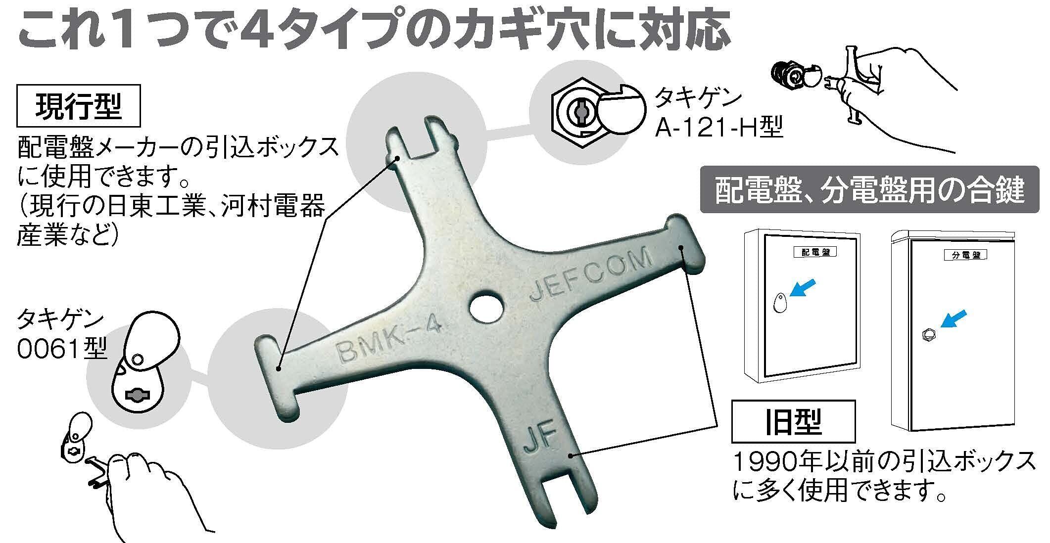 配電盤、分電盤用の合鍵 4タイプのカギに対応