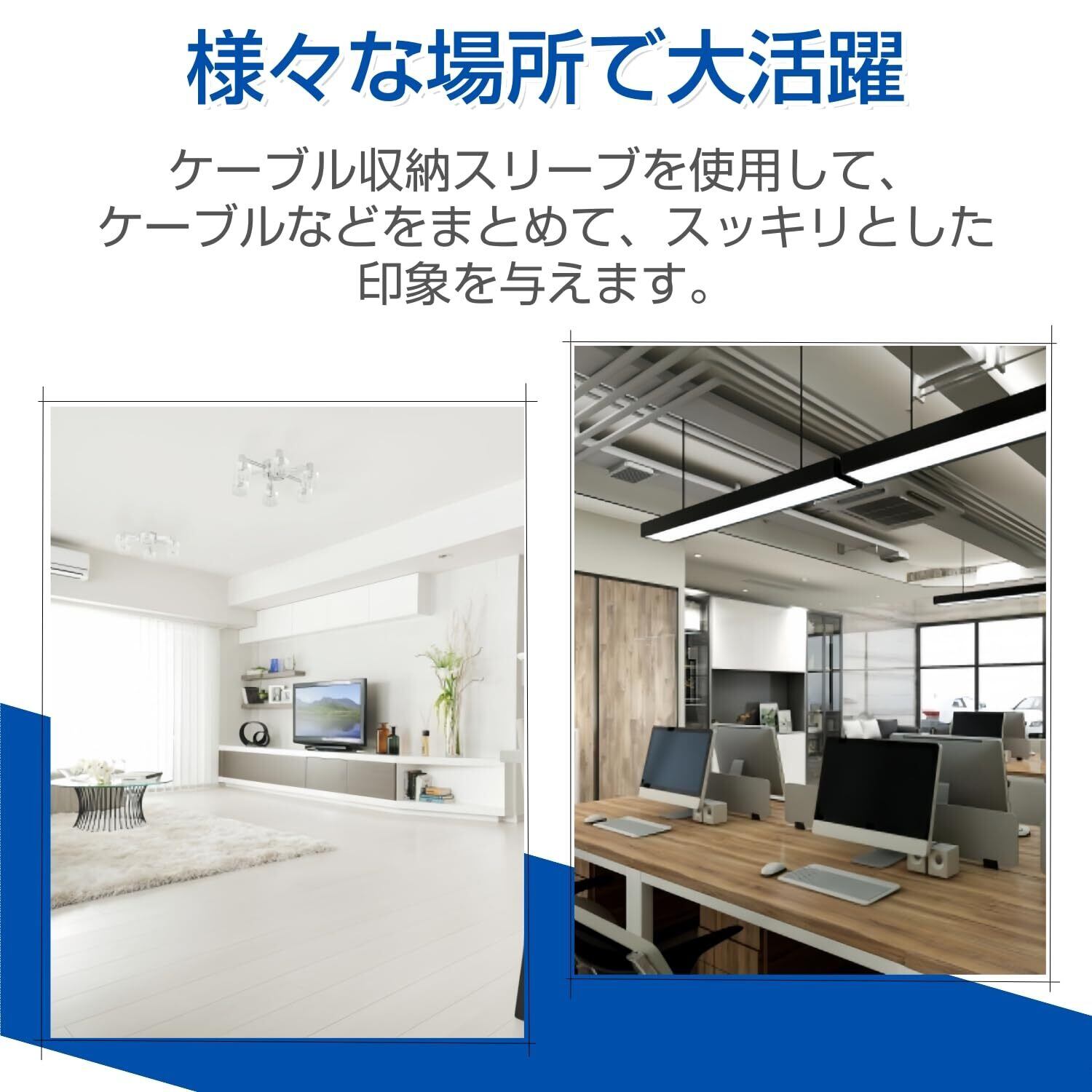 「配線を一つにまとめることで、見た目も美しく、掃除もしやすくなります。コードの絡まりや邪魔な配線をしっかりと整理し、快適な空間を手に入れましょう!」