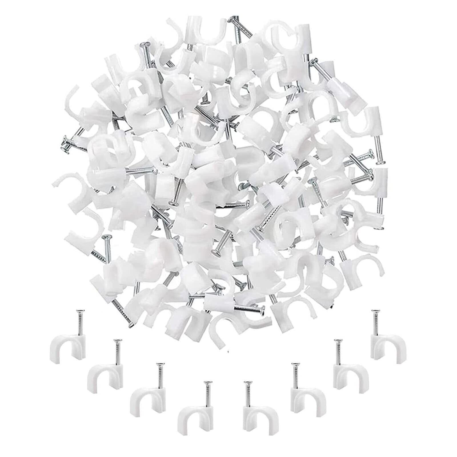 **\【配線をスッキリ整理!】コードとめ具 壁 7mm(100個入・ホワイトプラスチック) – LANケーブル用釘止めタイプ!/**