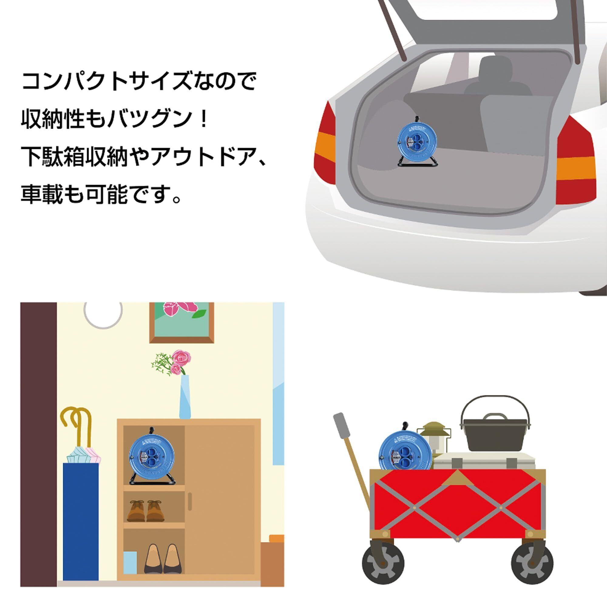 「小型設計で持ち運びがラクラク、収納スペースにも困りません。使用後はコードを巻き取ることで、絡まりを防止し、スムーズに保管できます。家庭でも工場でも、直感的に操作できる点が魅力です。」
