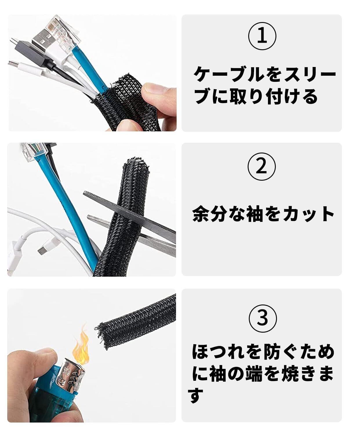 「このスリーブは自由に切断できるため、あなたのニーズに合わせたサイズに簡単に調整できます。個々の配線に最適な長さで使用できるのが魅力。どんな場所でも手軽に対応できる使い勝手の良さを実感してください!」