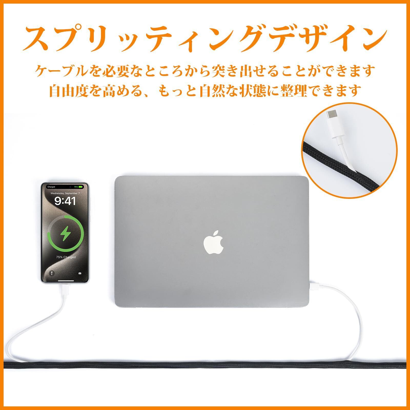 【スプリッティングデザイン採用】ケーブルの端末が違うところの場合は、ケーブルを必要なところから突き出せることができます、スリーブの途中からケーブルを取り出せます、整理後のケーブルがもっと自然に見えます。