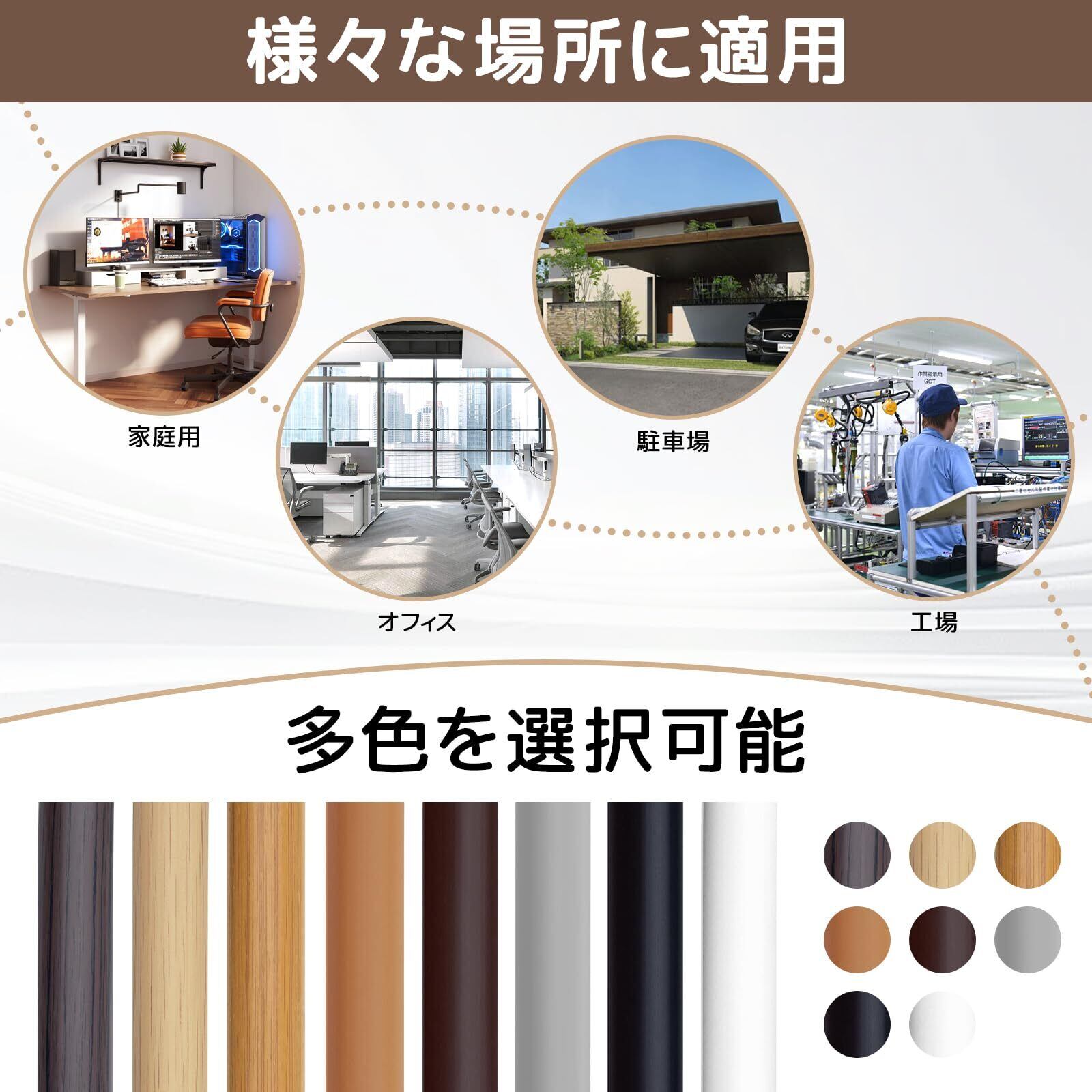「お宅のリビング、オフィス、工場、駐車場など、さまざまな場面で活躍します。配線をしっかりと隠しつつ、美しい環境を実現できるこのアイテムで、快適な空間を手に入れましょう!」