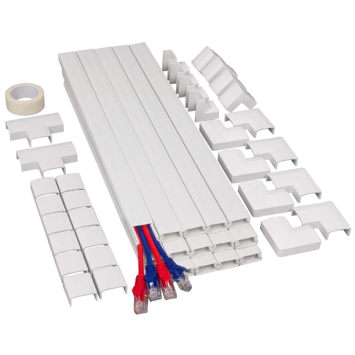 RK 配線カバー 【内寸23×11mm太め大容量収納設計】 両面テープ貼付済 40cm直線モール15本 6M & ジョイントパーツ 5種類 & 壁紙保護用 マスキングテープ付 配線モール 電線ケーブルカバー 配線隠し 配線整理 コードかくしカバー 日本メーカー企画品 (フルセットホワイト)