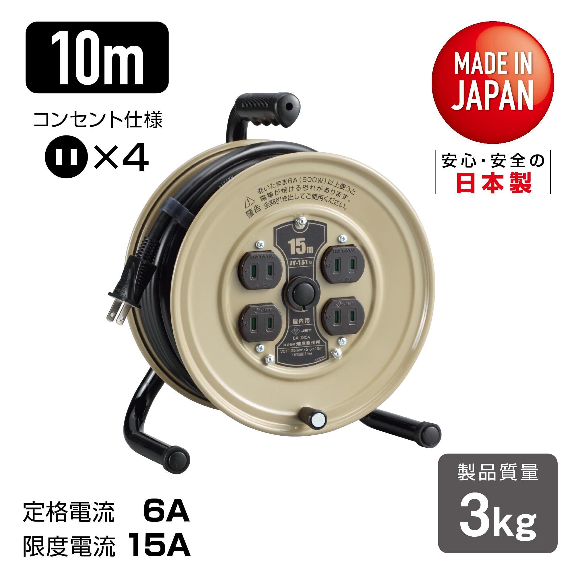 ハタヤ (HATAYA) コードリール 15m 2P 4個口コンセント 125V 15A 防塵シャッター付き 工場 アウトドア レジャー キャンプ JY-151