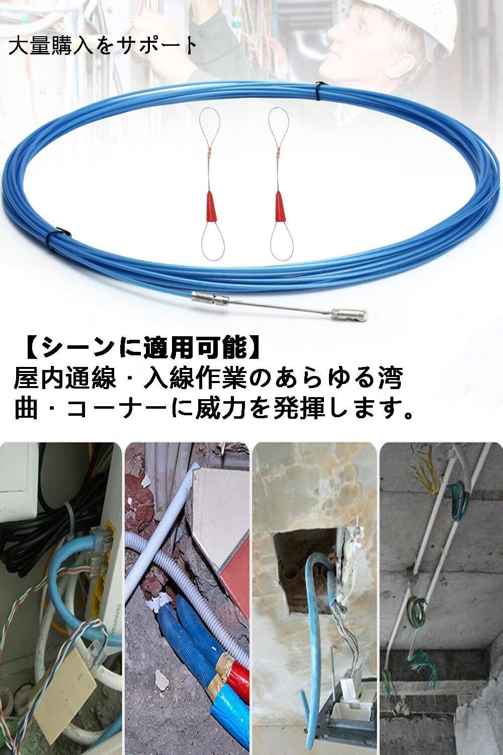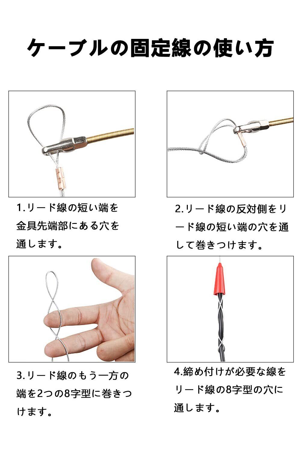 「本製品は高強度のスチール素材で作られており、長寿命を誇ります。柔軟性と適度な硬度を兼ね備え、曲がりの多い空間でも楽に操作できるため、工事現場や家庭での配線作業にも最適です。」