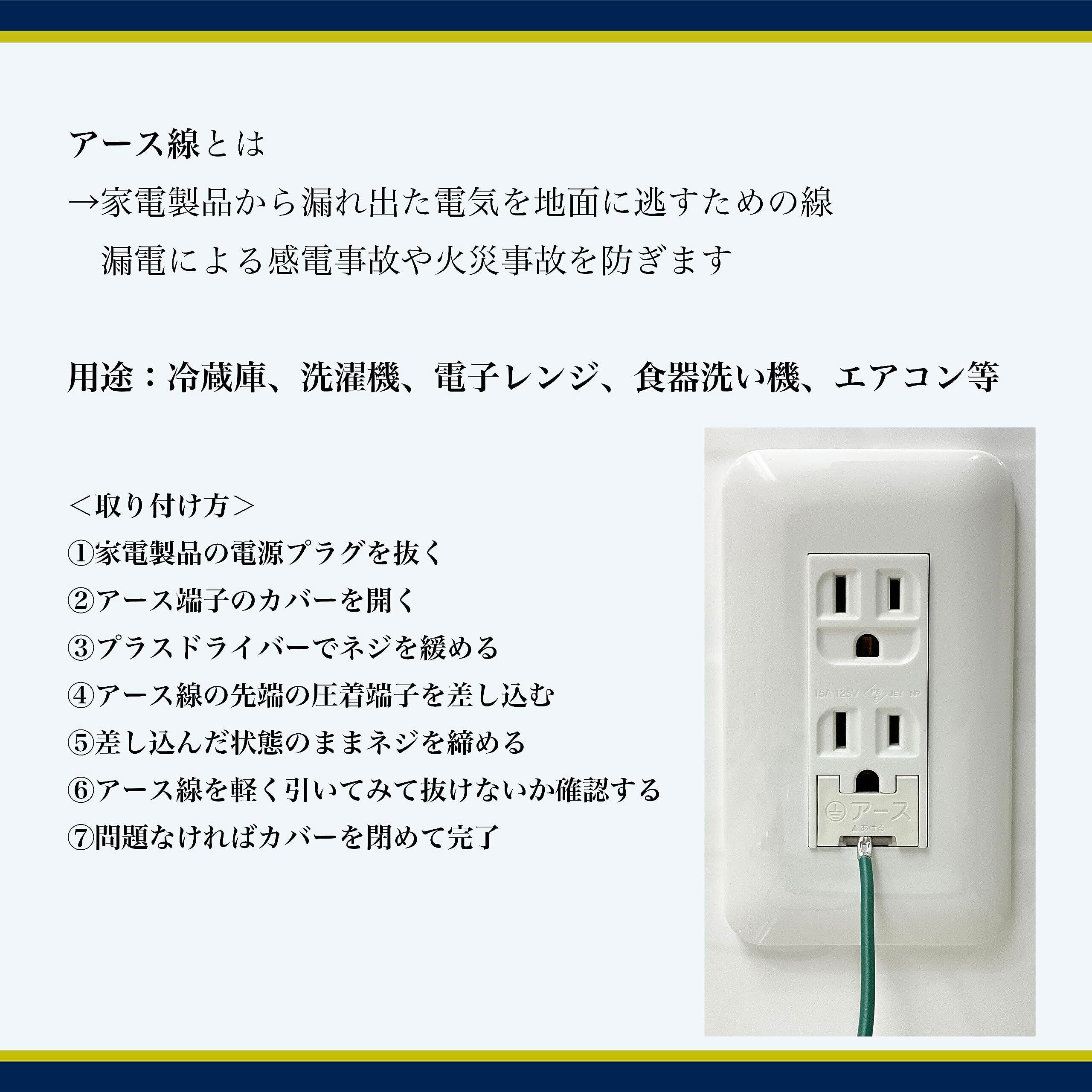 「『アースケーブル KIV線』は、1.25㎟の断面積を持ち、600Vの高電圧に対応した信頼の電線です。安全性を考慮した設計により、漏電や感電のリスクを低減し、安心してお使いいただけます。」