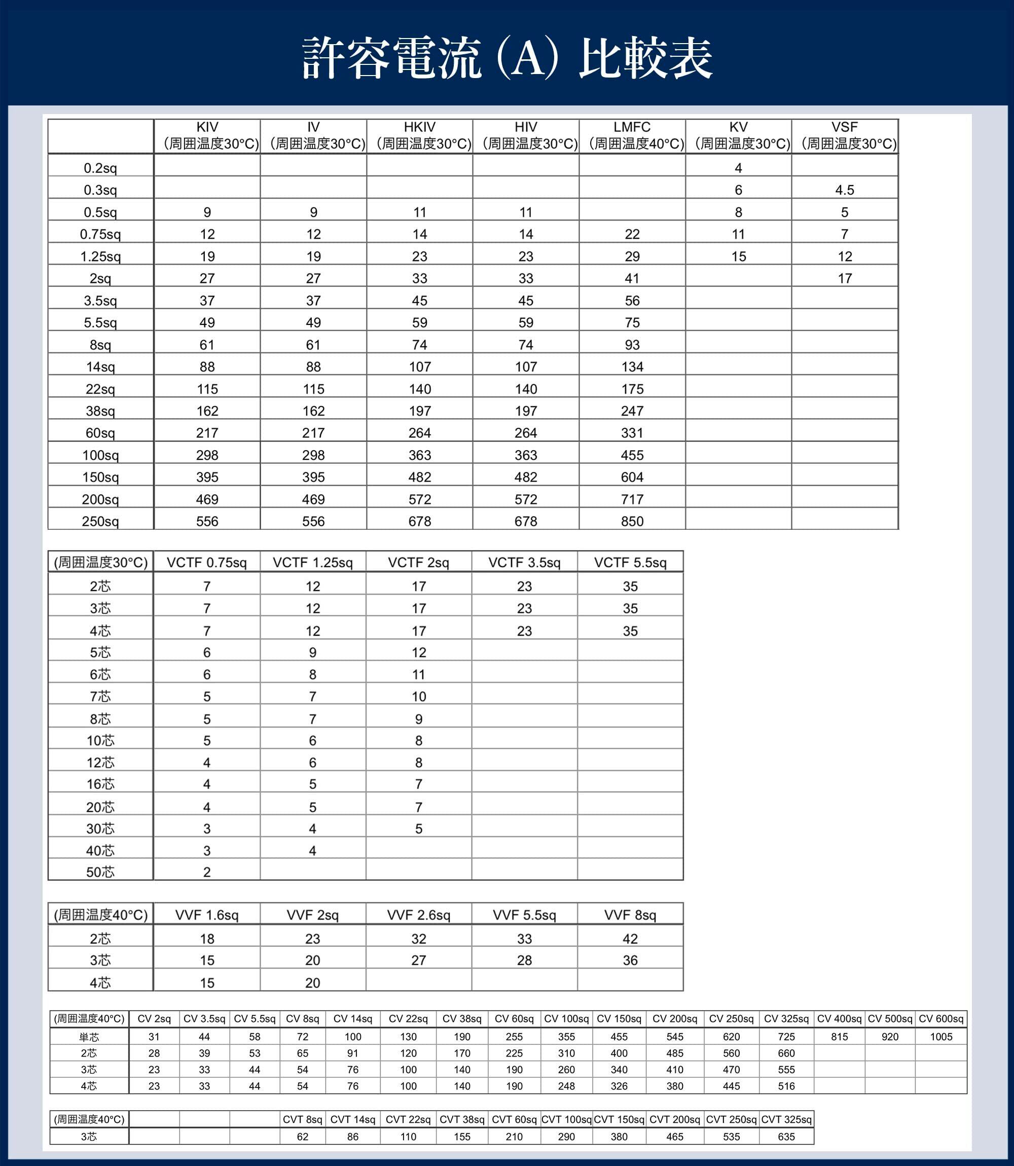 導体に可とうより線 電線:KIV サイズ:14SQ 定格電圧:600V 定格温度:60℃ 芯線面積:14m㎡ 導体外形:4.9mm 被覆厚:1.4mm 電線外形:7.7mm 許容電流:88A 耐電圧:2000V/1min.