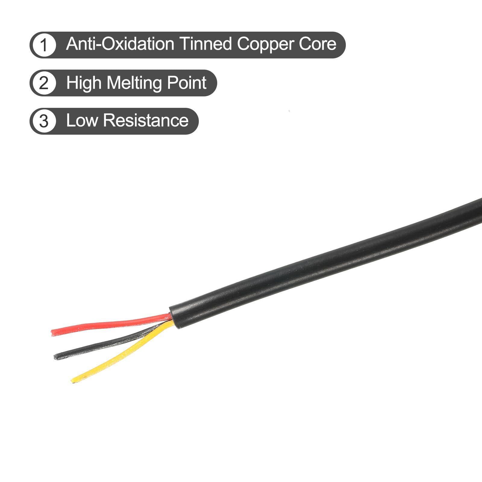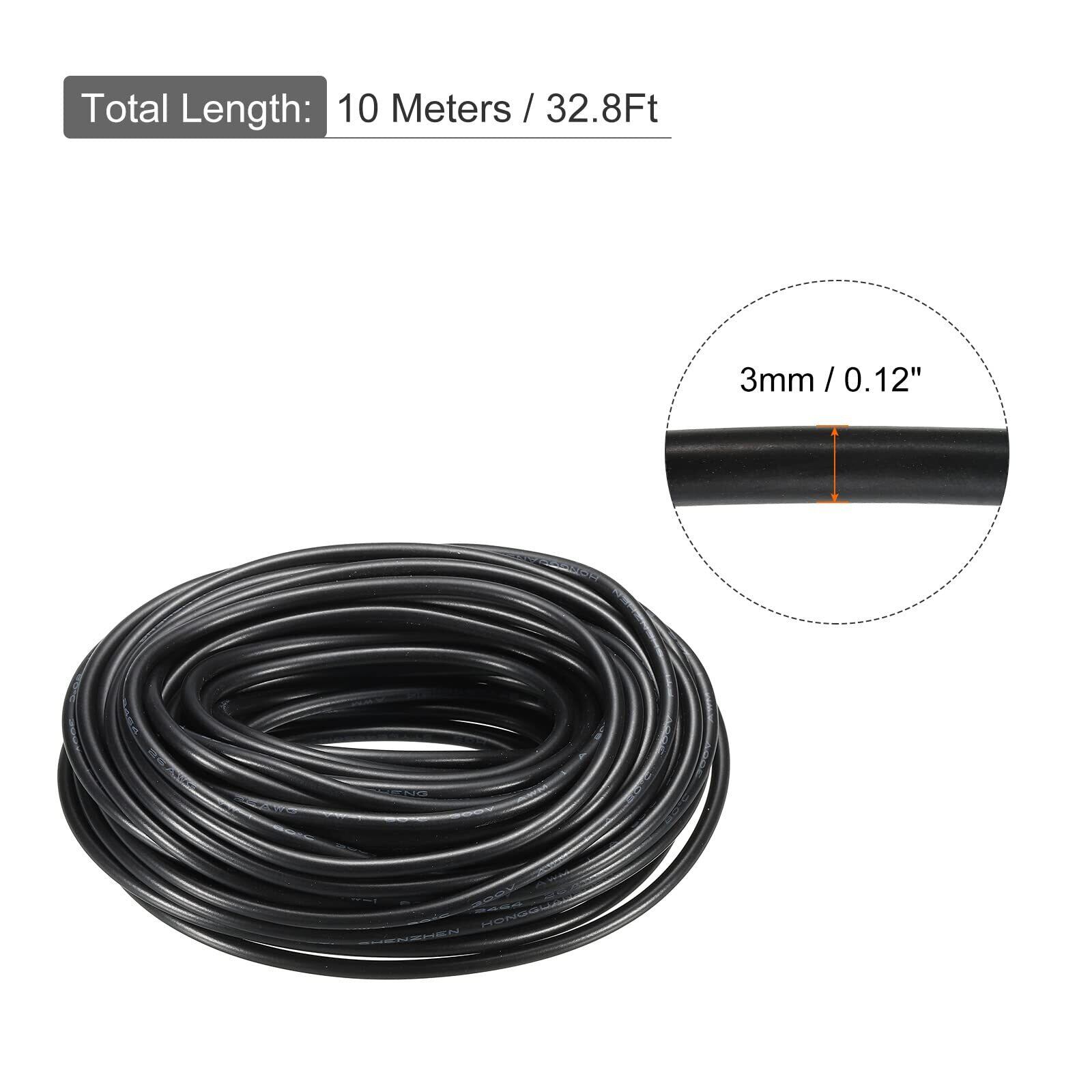 uxcell 電線ケーブル 26A WG電線 3芯 UL2464 LED電源照明ケーブル 錫メッキ銅 10M 低電圧 PVCケース 配線 絶縁 延長電源コード 交換 修理 リード線 LEDストリップランプ照明用 黒