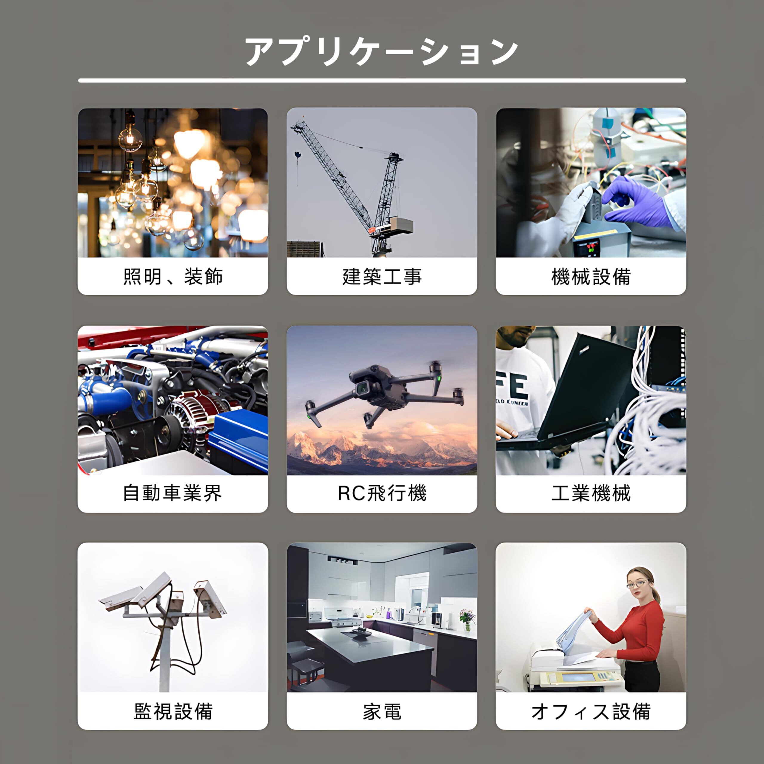 ◆使用シーン:DIY、RC航空機、RC車、モデル船、バテリー、ランプ、家電、電気暖房器具、計器、モーターリード線、テストリード線、RCアプリケーションなどに広くご使用されています。