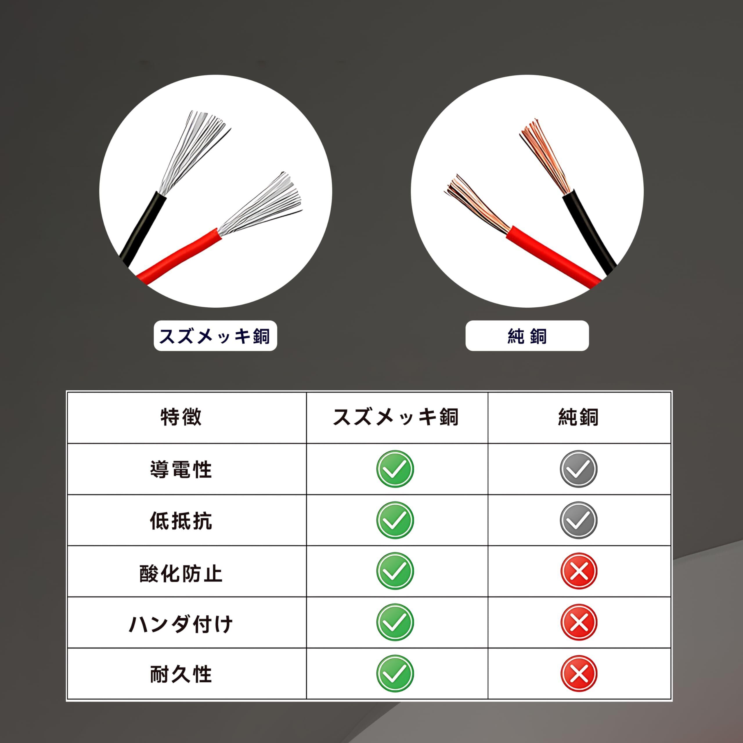 ◆導体特徴:高純度無酸素錫メッキ銅より線を採用され、高導電性、低抵抗、柔軟、自由に彎曲、半田付けやすい、導体と絶縁材の分離及びコネクタの接続に簡単、結線、裁断簡単、お使い易いです。