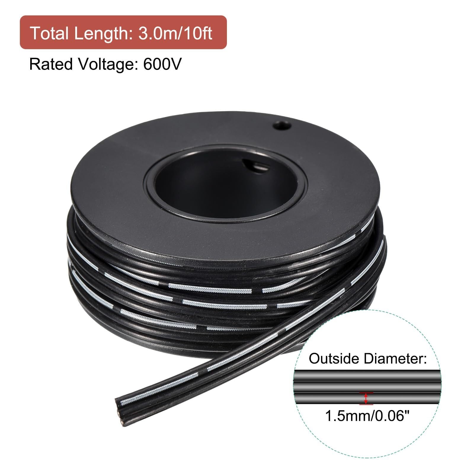 パッケージ内容: 1 x ブラック電気シリコンリボンケーブル; 長さ:3.0 M; 外径:1.5 mm; スタイル: ブラック平行配線; 絶縁材: シリコーン; 導体材質: 錫メッキ銅; 銅線コアの数:3; 定格電圧: 600V; 高温耐性: 200℃;C/392℉