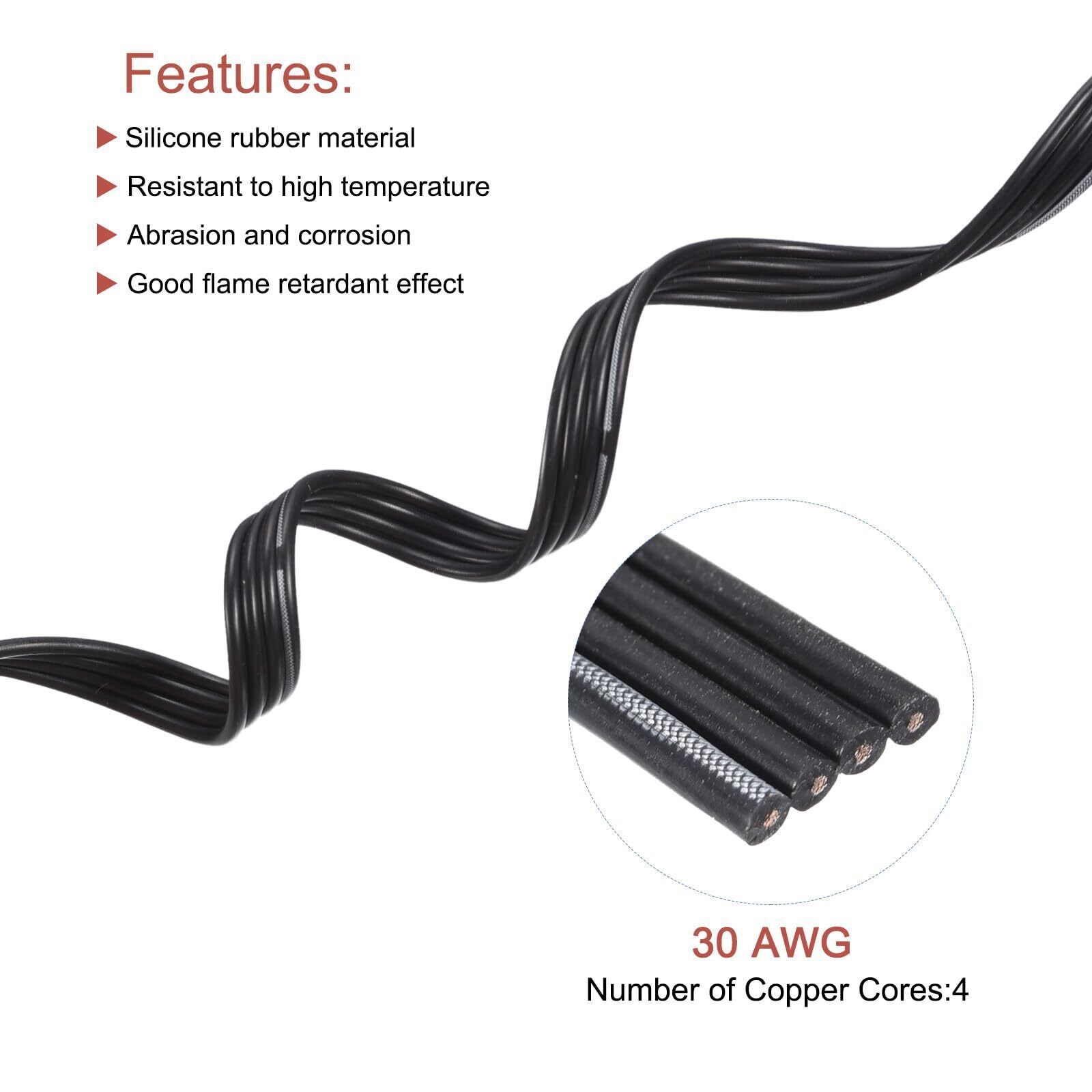 uxcell 30AWGシリコンリボンケーブル 4ピン 30ゲージ フラットケーブル 柔軟なシリコーンワイヤー 3.0 M 錫メッキ銅撚り線 ブラック