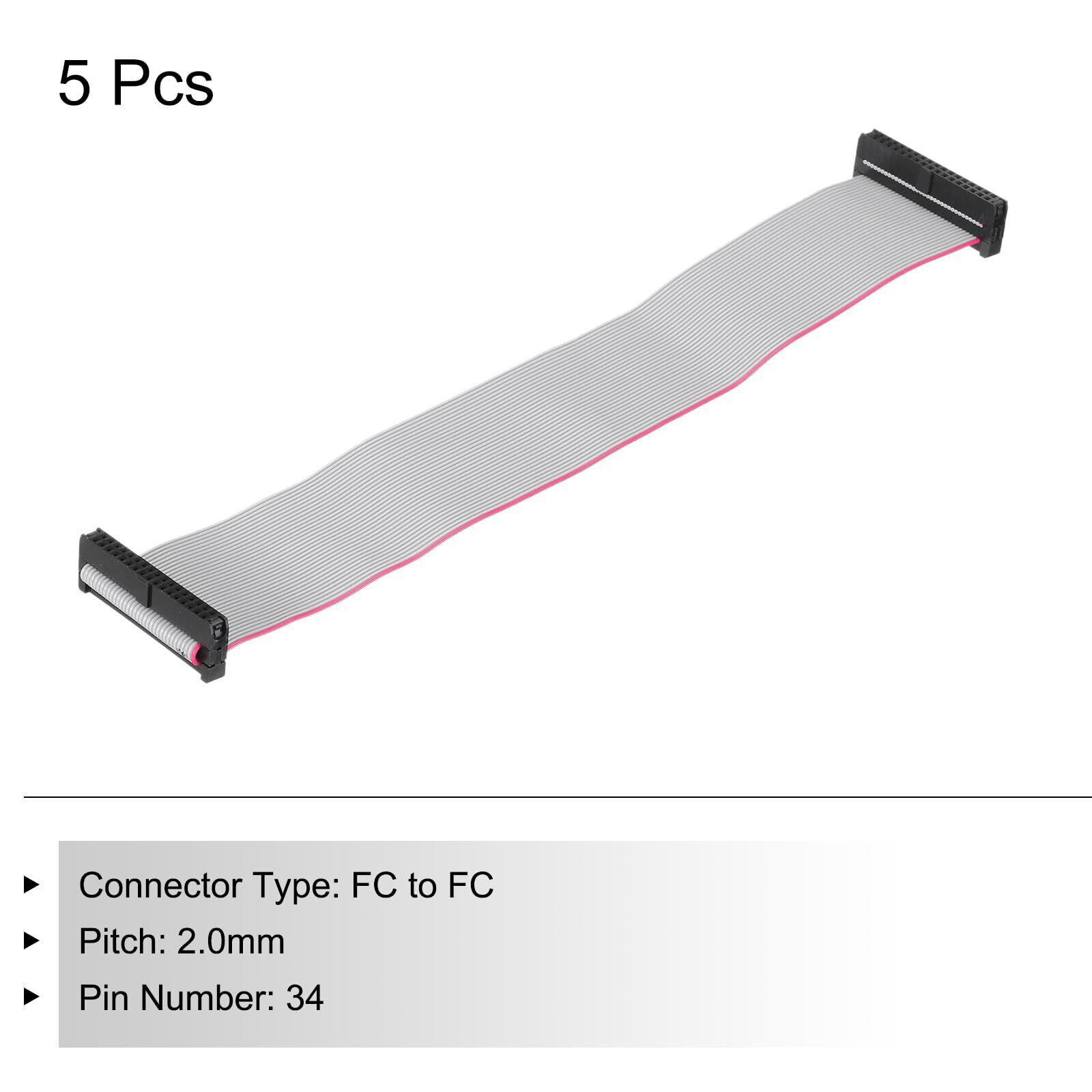 uxcell IDCフラットリボンケーブル FC-FCコネクタ 34ピン 2.0mmピッチ 20cm グレー コンピュータ/LED/DVD用 5本セット