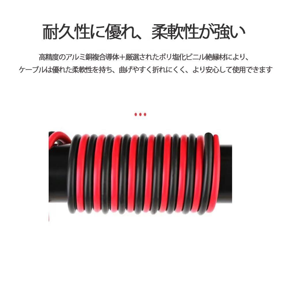 3【安全性高い】絶縁電線の上に外装がカバーされていることから、安全性も耐久性も高いのが大きな特徴です。ブラックとレッドの2本のケーブルを組み合したタイプ、接続や延長に最適です。