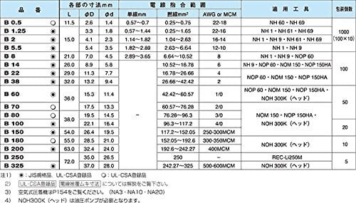 *無酸素銅管(電気すずめっき)*銅線専用です*指定の適用圧着工具をご使用ください*電線抱合範囲内でご使用ください。