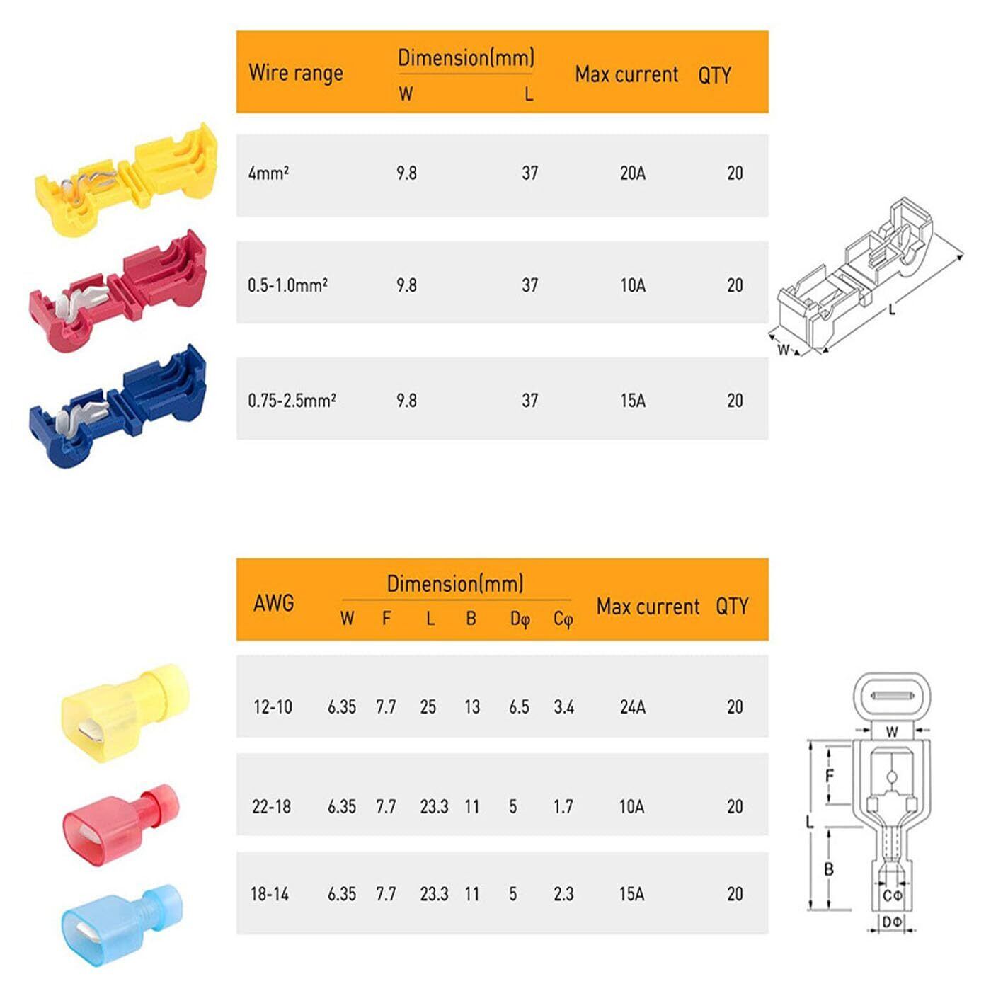 【幅広い用途】 自動車、オートバイ、家庭配線工事などの多種のシーンの電線接続に適用し、T型高速コネクタは応用が柔軟である、 異なる色設計は迅速な識別と選択に便利で、操作効率を効果的に向上させる。