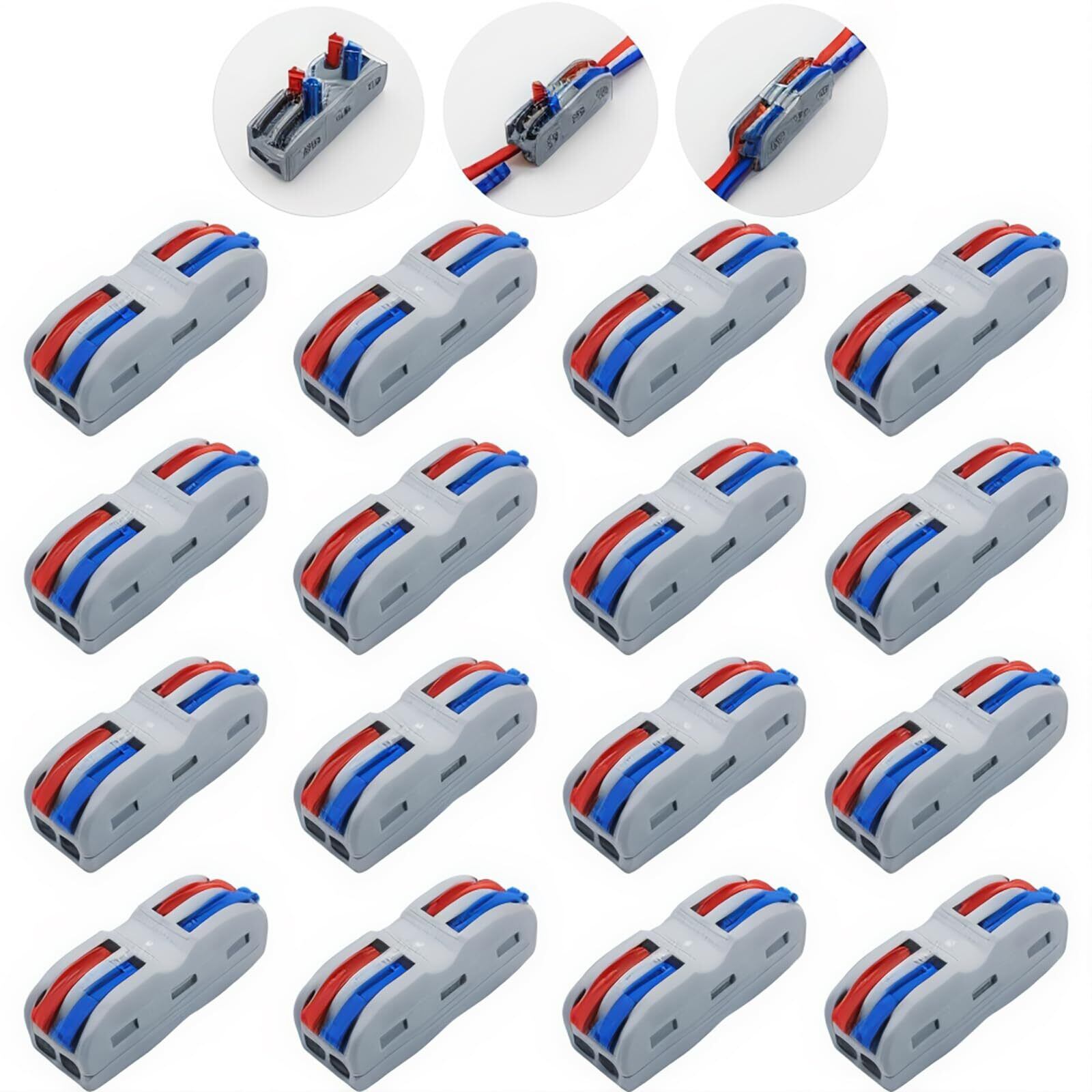 ワンタッチコネクター, CESFONJER SPL-2 電気配線 コネクター, 2ウェイ4ポート 導体コンパクトスプライスコネクタ (16 個)
