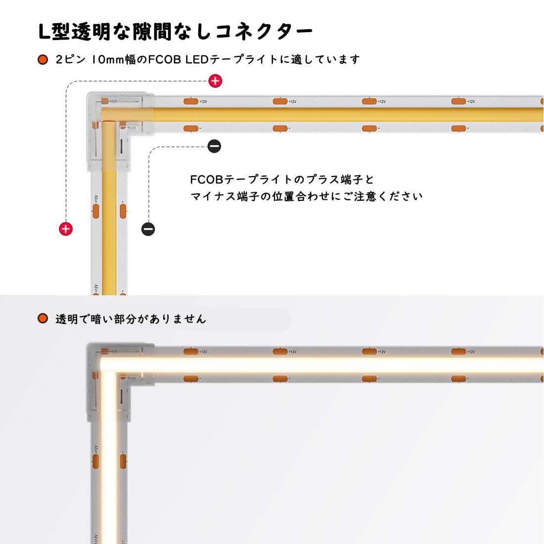 BTF-LIGHTING 2PIN コネクター FCOB COB 10mm幅 LEDコネクターキット 4個 透明なL型コネクター FCOB FOB PWM 単色 +V -V LEDテープライト用の透明なミドルカバーコネクター 半田不要 LEDテープライトに直接接続可能