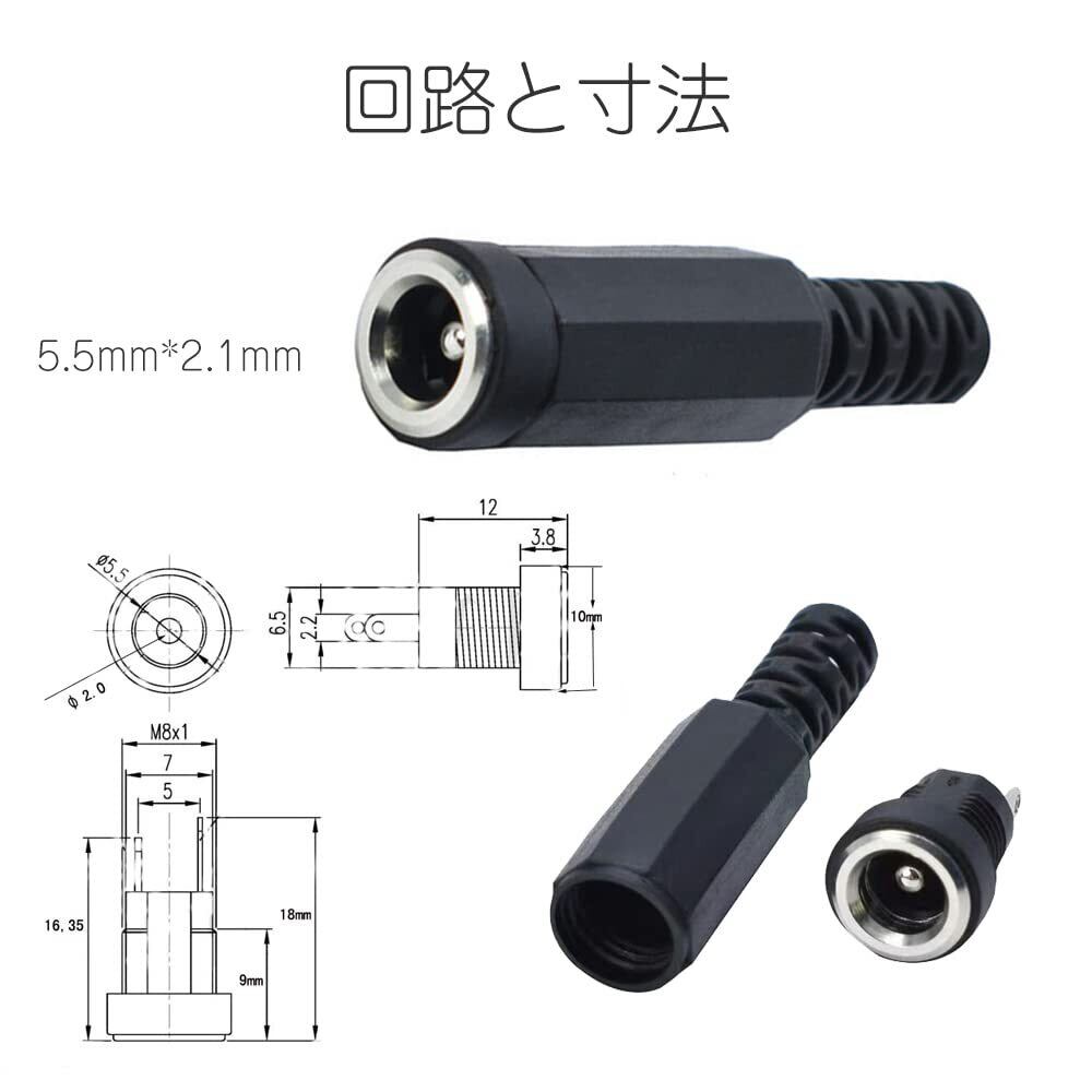 DC電源コネクタ DCメスコネクター 12V電源エンド はんだ アダプタ 外径5.5mm 内径2.1mm修理自作用 DCオスコネクター(ブラック ※4個セットです。)
