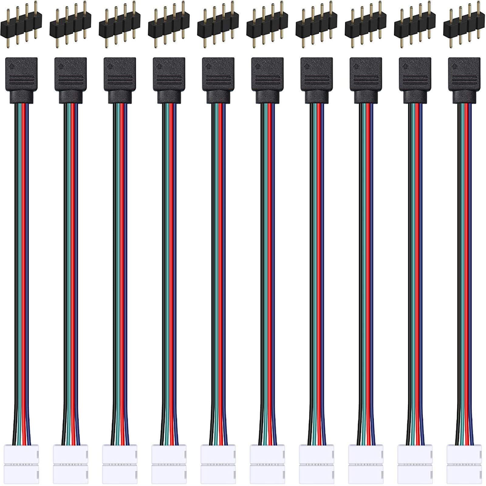 【 LEDテープコネクタ 】10本4ピン品質のケーブルSMD 5050 RGB LEDストリップライト用LEDストリップコネクタ。