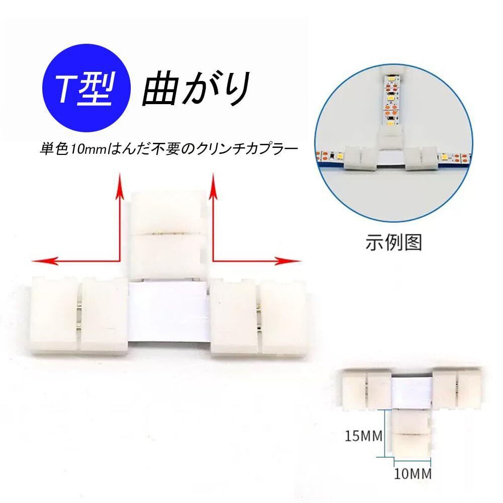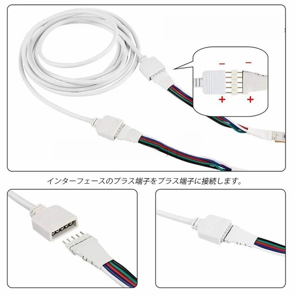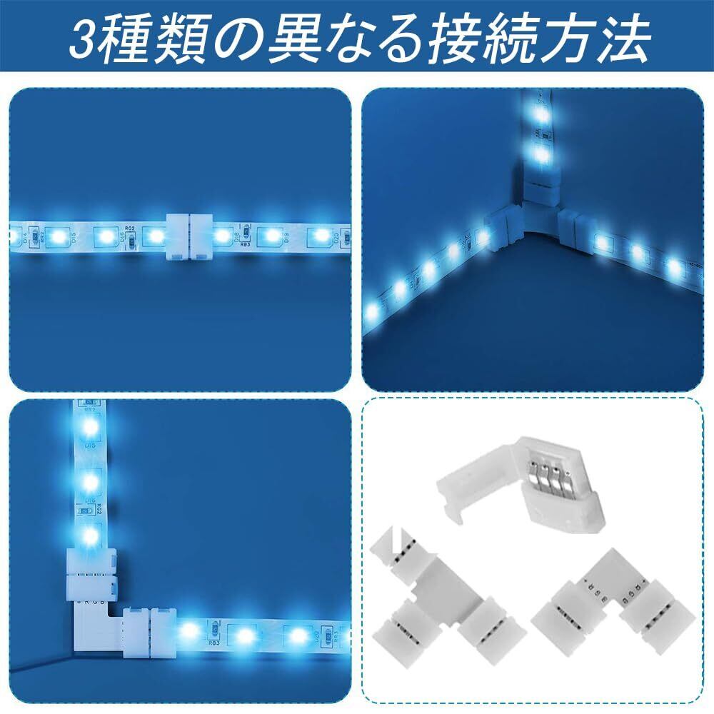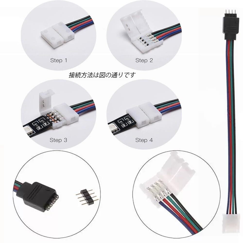 LEDストリップライトコネクタ キット SMD5050 4ピンRGB 10mm幅 ledテープ 延長用ケーブル 簡単接続 半田付け不要 耐高温性 耐久性 ライトストリップ用