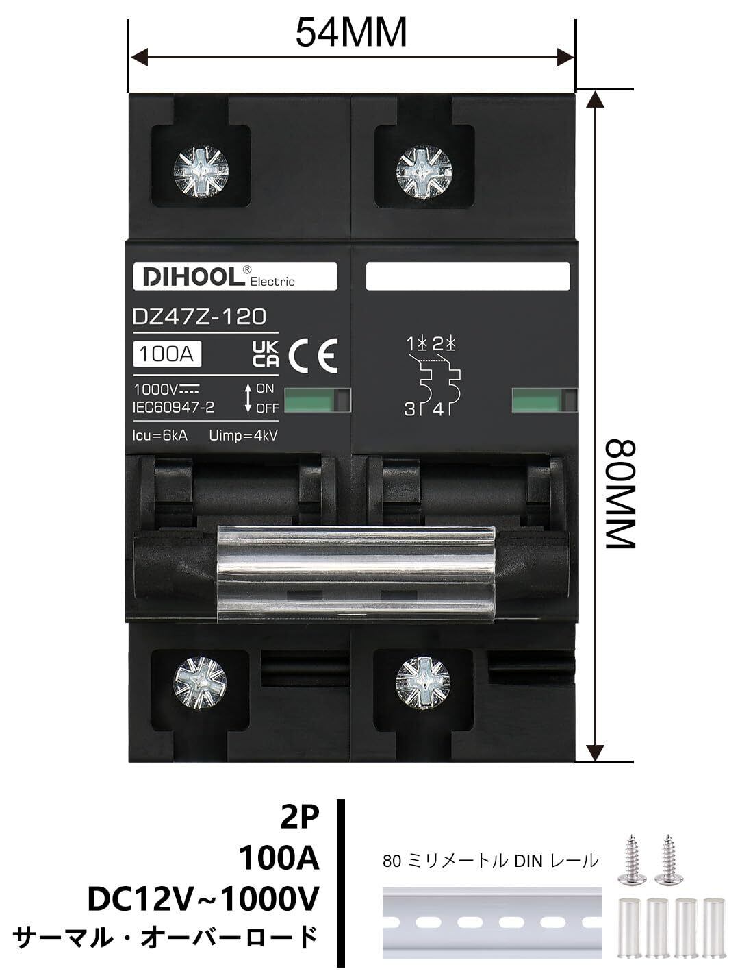**\【DIHOOL 直流回路遮断器 2 極 DC 12-1000V 100A ミニチュアサーキットブレーカー】– 太陽光発電システムをしっかりと保護する信頼のパートナー!/**