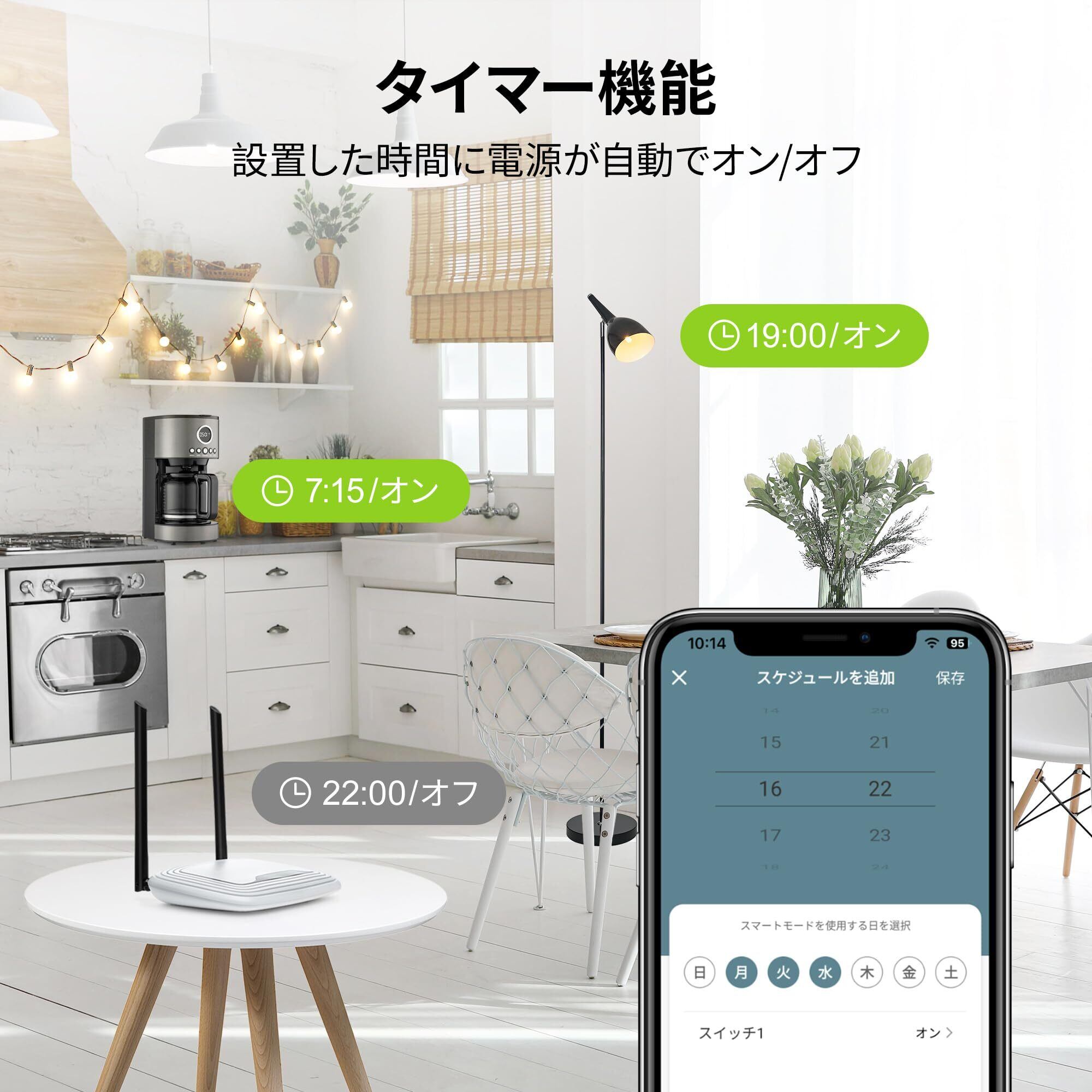 「BN-LINKのスマートプラグは、複雑なハブや追加機器が不要です。Wi-Fi接続があればすぐに使用開始でき、簡単にスマートライフを楽しむことができます。」