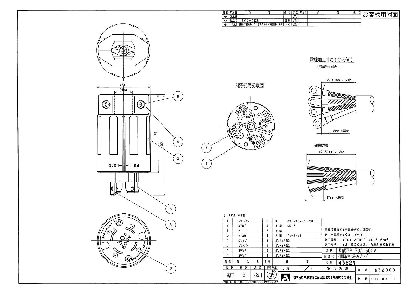 **\【アメリカン電機 引掛形 ナイロンプラグ 接地3P30A600V 4362N】– 高耐電圧で安心の電機部品!/**