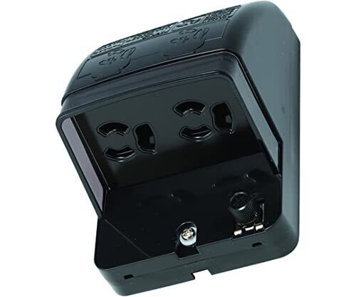 「この防雨入線コンセントは、しっかりとした防水設計が施されているため、雨や湿気の影響を受けにくく、安心して使用できます。屋外での電気機器の使用に適しており、耐久性に優れています。」
