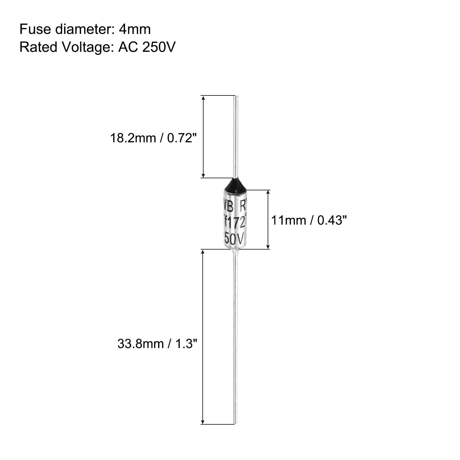 定格電圧:AC 250V;定格電流:15A;カラー:シルバートーン;ヒューズサイズ(直径×長さ):4x11mm/0.16x0.43インチ;定格溶断温度:172°C(341.6°F);パッケージに含まれるもの:金属温度サーマルヒューズ10個;