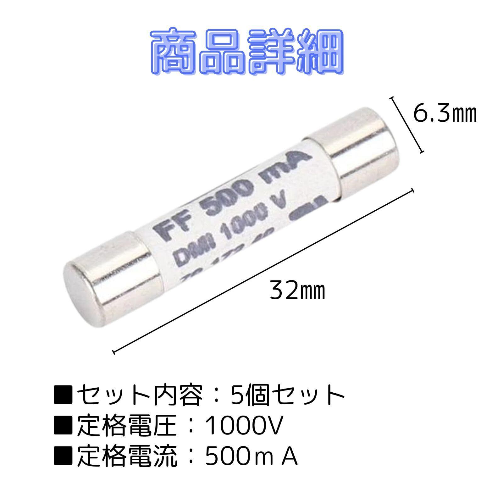 【コンパクトで幅広い用途】定格電流約500mA、定格電圧約1000Vで、コンパクトなサイズ(全長約32mm、直径約6.3mm)なので、幅広い用途にお使いいただけます。このセラミックヒューズは高速ヒューズです。このヒューズは高温で動作するため、トランジスタやダイオードなどの半導体デバイスの回路を保護するのに適しております。
