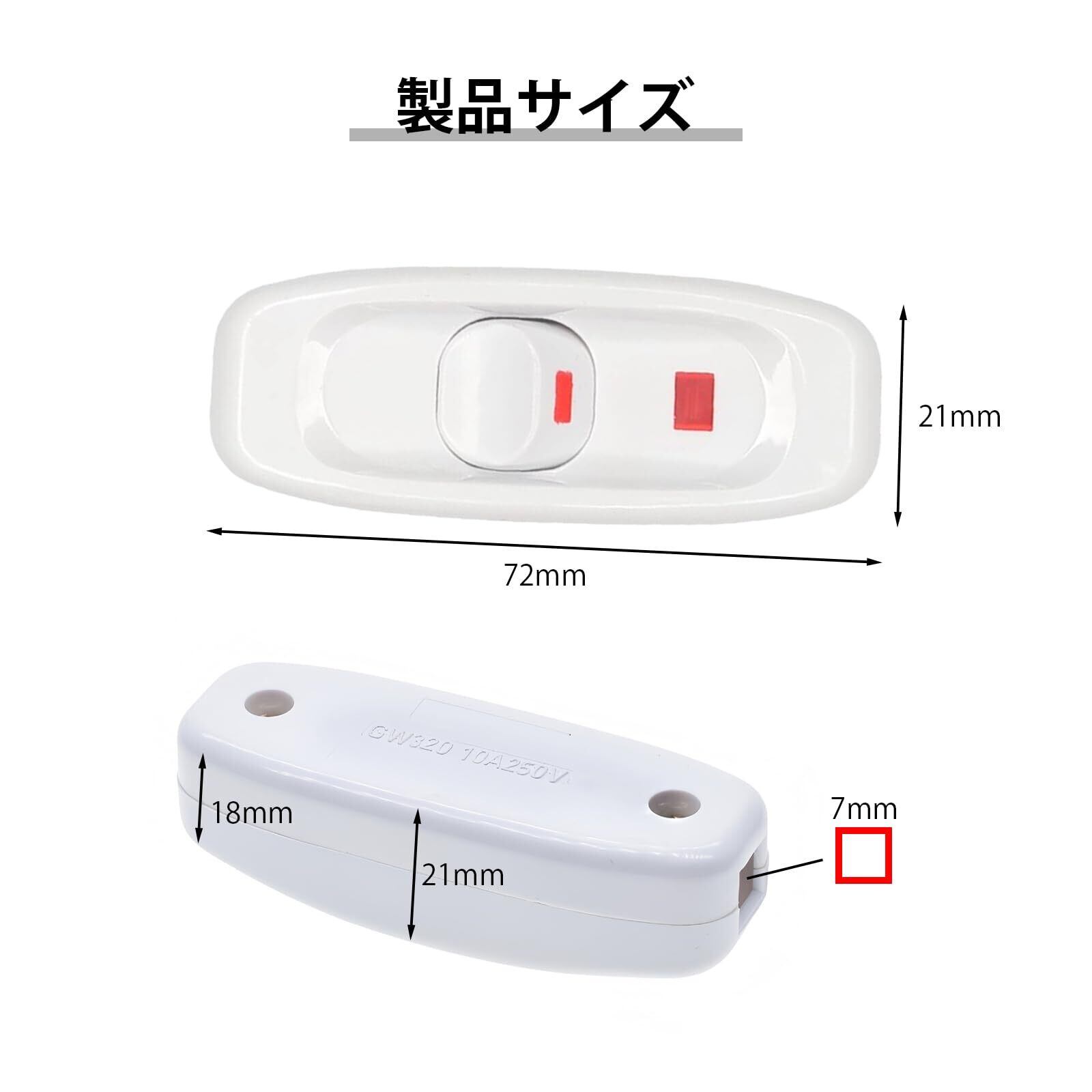 このインラインコードスイッチは、照明器具や換気扇などの電気製品を簡単にオン/オフできる便利なアイテムです。2個セットで提供され、AC 250V 10Aまでの電力に対応しています。白を基調とした洗練されたデザインで、どんな室内環境にも調和します。押しボタン式の操作で、誰でも簡単に使用できます。設置も簡単で、既存のコードに取り付けるだけで使用可能です。赤いインジケーターで、スイッチの状態が一目で分かります。コンパクトなサイズながら、耐久性のある素材で作られており、長期間の使用に適しています。家庭やオフィスでの電気製品の操作性を向上させる実用的なアイテムです。安全性を考慮した設計で、日常的な使用に最適です。