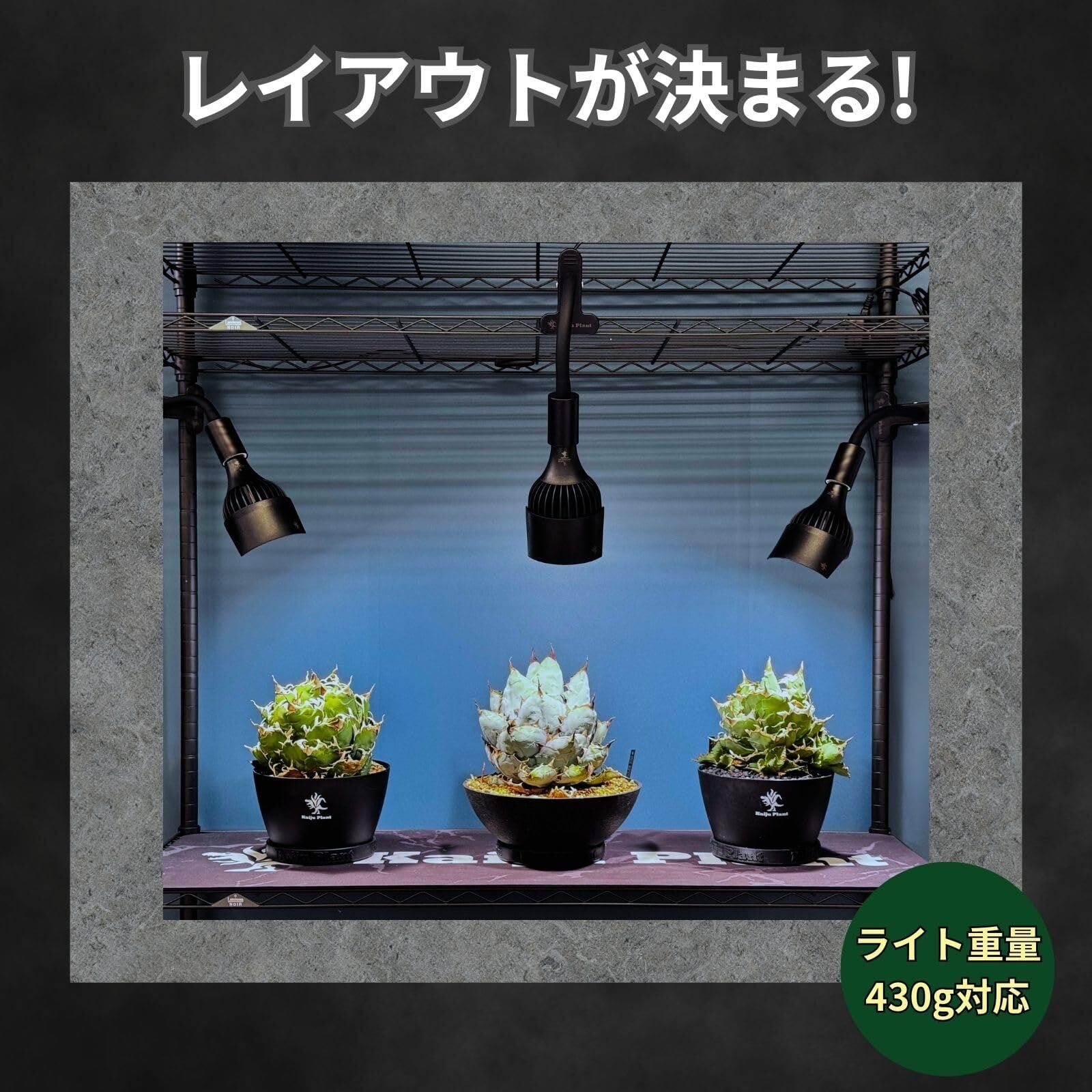 【アガベ・塊根植物の育成に最適】LED育成ライトを安定設置できる、園芸専用設計のクリップソケット。最大430gまで対応し、アガベや塊根植物のライト管理に最適です。