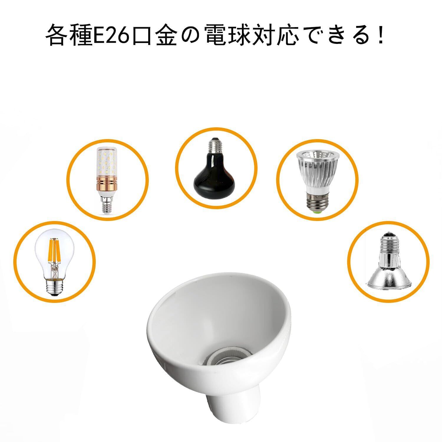 口金E26の電球がご対応できます。電球形蛍光灯、白熱電球はもちろん、LED電球と爬虫類ヒートランプなどを全部利用することで更に電力削減ができます。●ご注意:本製品は電球を含まれていません。