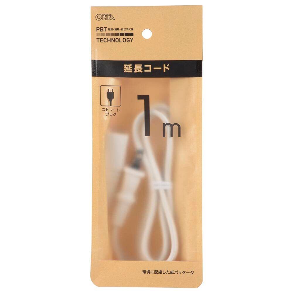 オーム電機 延長コード 屋内用 電源タップ 1個口 1m ストレートプラグ ホワイト HS-T11EDLP22 00-1555 OHM