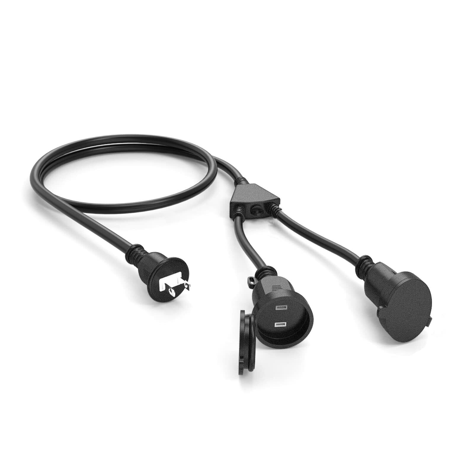 コンセント:2分配、コンセントが足りないという悩みを十分に解決するものです。また、電源の延長ケーブルとしても使用できます。家庭やオフィスや庭などの作業場で安心して使います。ご注意:合計1000W以内のデバイスに対応できるAC電源ケーブルです