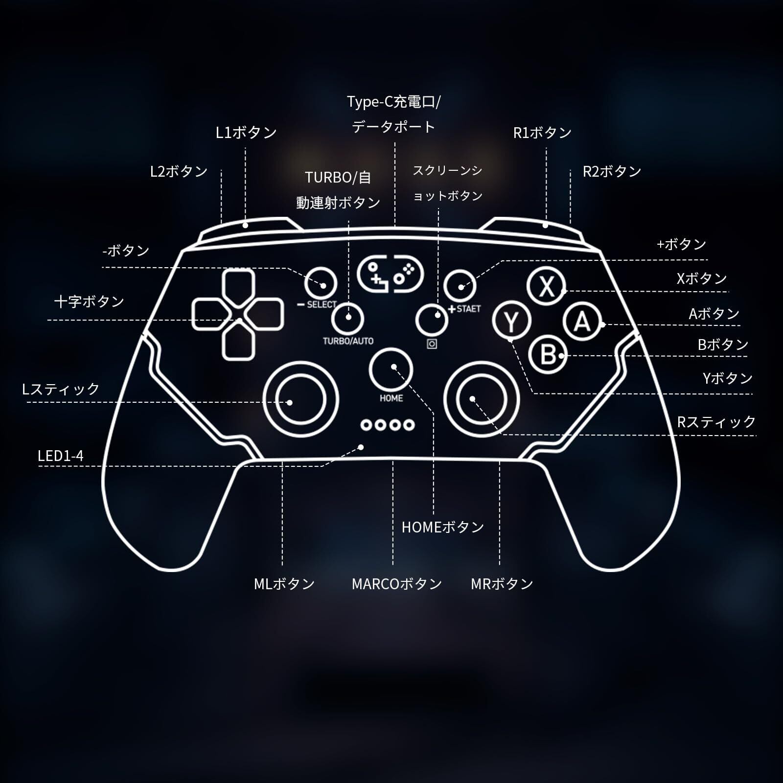 【2025年アップグレード版&高い交換性】2025年アップグレード!本製品はまれにあるシンメトリーボタン配置のSwitch用無線コントローラーです。洗練なるモノクロ配色とクールなオールブラックの2色、マクロ編集機能、2つの背面ボタン、3段階Turbo連射速度、4段階HD振動、Bluetooth5.0接続、6軸ジャイロセンサー、スクリーンショット、自動連射機能(連射ホールド)など、様々な機能が今までと異なるゲーム体験が楽しめます。高い交換性を持つ、Android/iOS13.0+/PC Windows7/8/10+にも接続可能、MFI認証のスマートフォンゲームに対応可能。本型番はSwitch本体だけではなく、スマホやタブレットにも無線接続可能です。※Switch2へのスリープ解除対応できません。一部のSwitch2ゲームのプレイは対応できません。