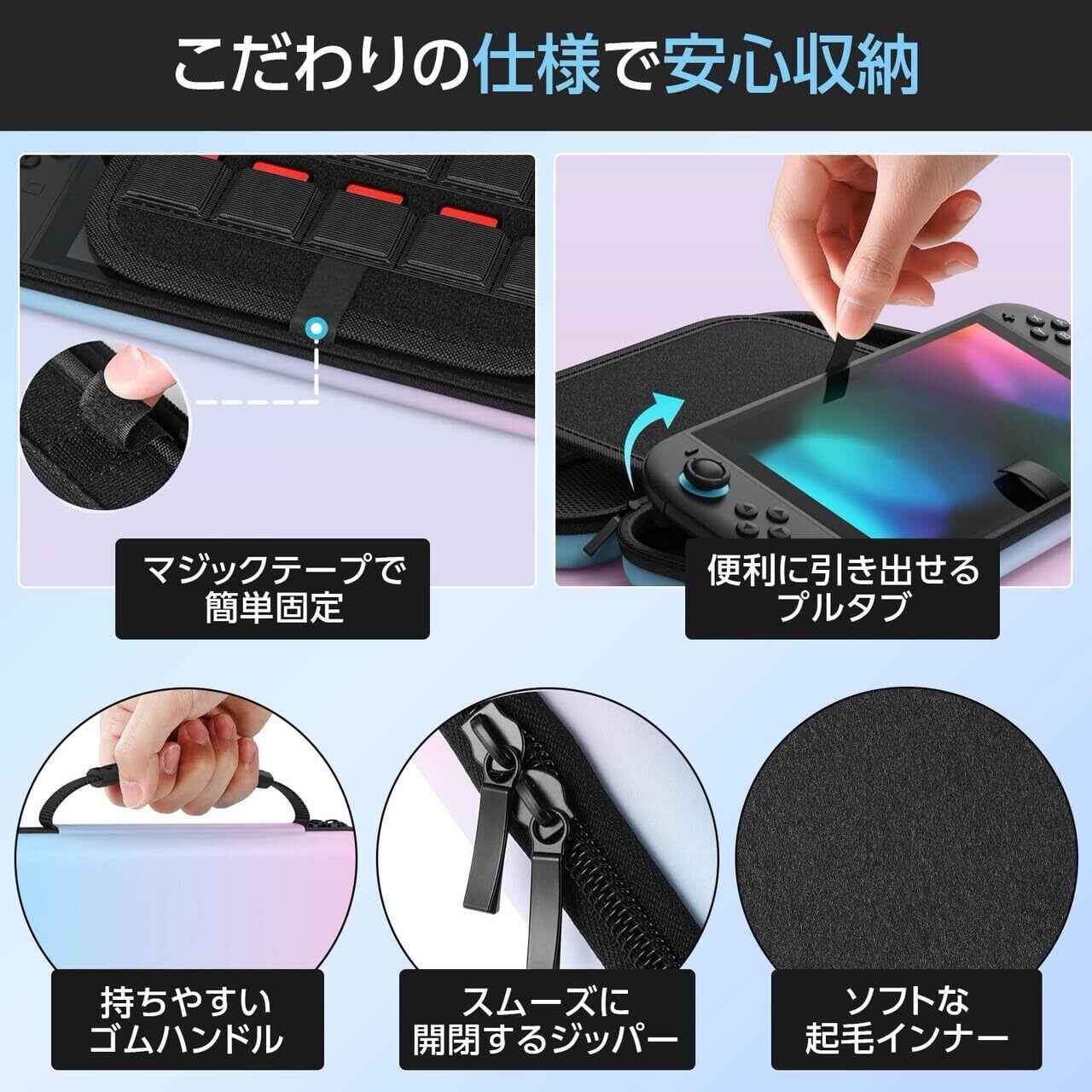 [Jecca] Switch2対応 ケース Nintendo スイッチ2 スリム 全面保護 キャリングケース ハードケース 耐衝撃 ポーチ ソフト10枚収納 (ピンク&ブルー)
