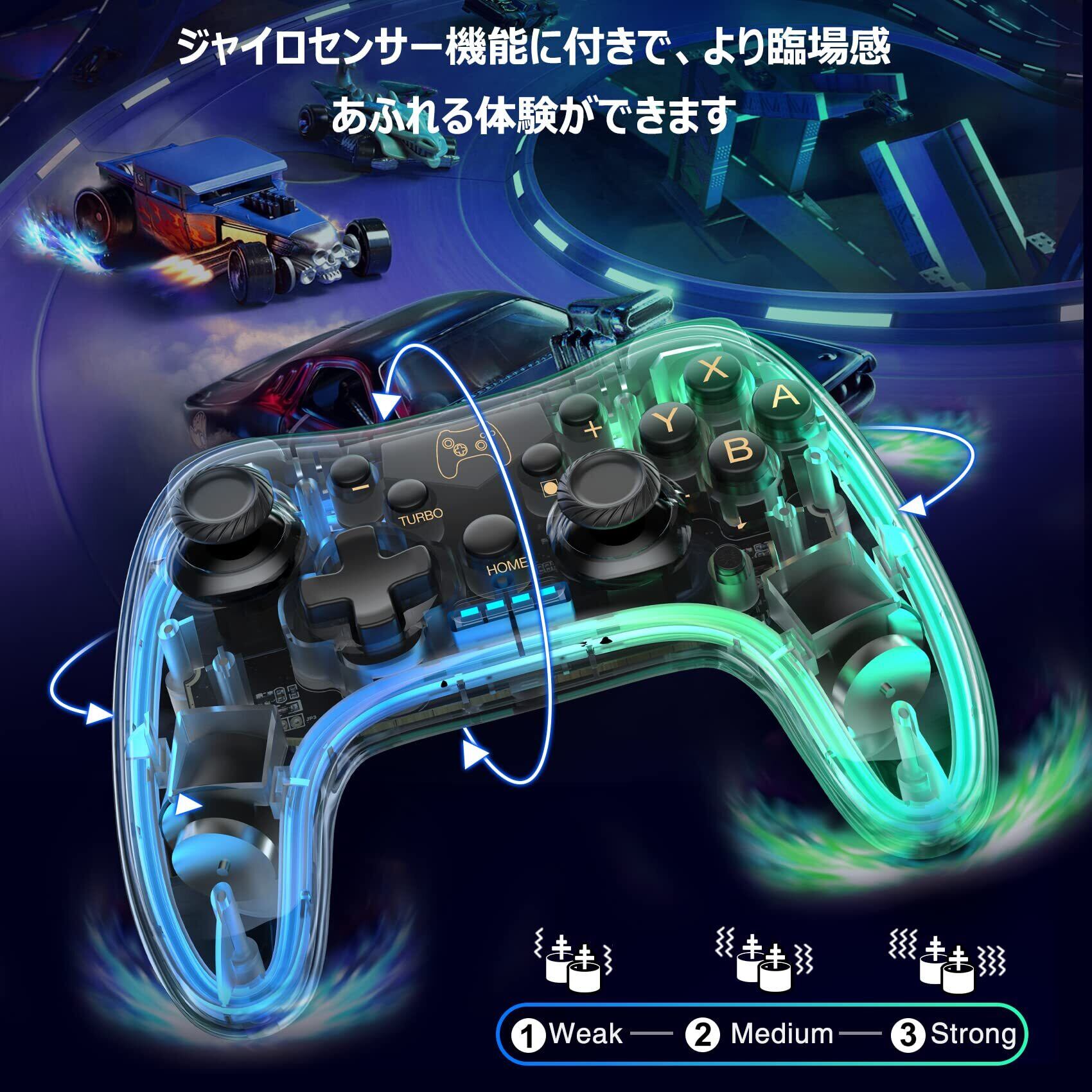 Elekasumi Switch コントローラー 光る【Switch1/2代対応】10色RGBライト スイッチ コントローラー 無線 アプリ設定 TURBO連射 6軸ジャイロセンサー pro コントロー ラー Bluetooth接続 Switc hプロコン Switch全世代に対応PC/Android/IOSに適用 透明色