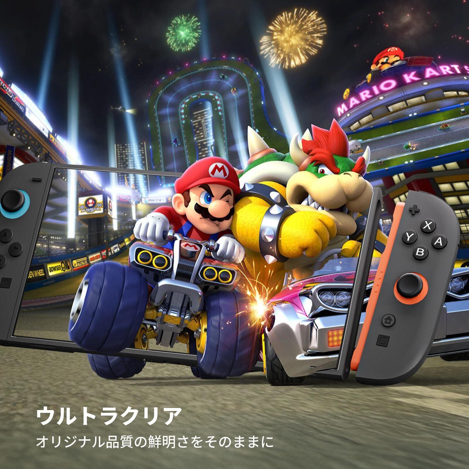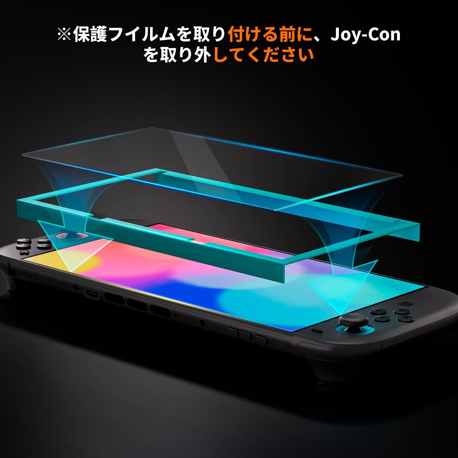 「9Hの表面硬度を誇る強化ガラスを使用しており、衝撃や scratches から大切なSwitch 2の画面をしっかり保護します。不意な落下や衝撃からディスプレイを守る頼もしい存在です!」