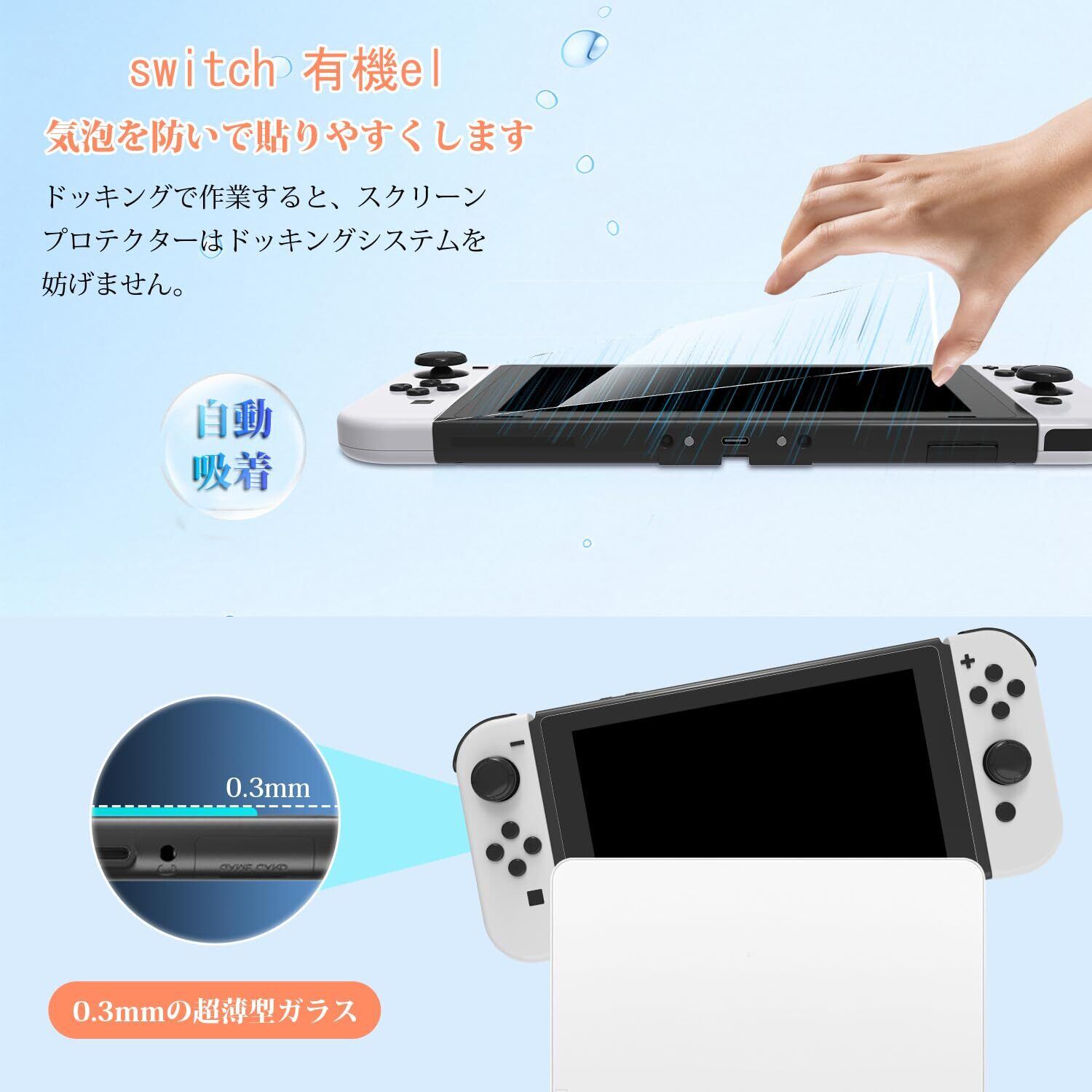 Switch 有機el ガラスフィルム 用 Sungale『2枚入り』新型switch 有機elモデル Switch oled 画面 保護フィルム 日本硝子素材 9H 硬度 2.5Dラウンドエッジ加工 画面保護 全面保護 指紋防止 気泡ゼロ