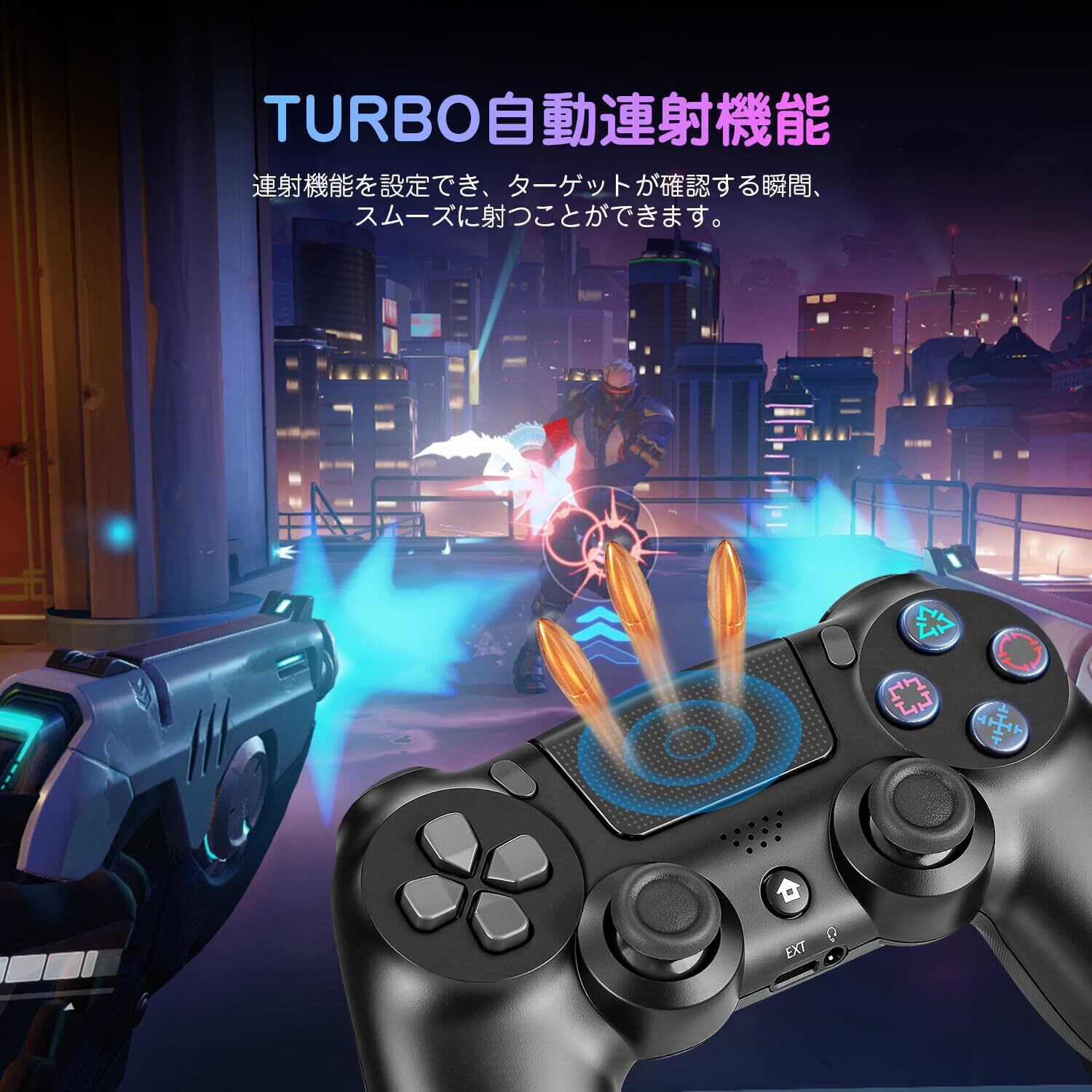 「『【2025年革新版・アップデート】ps4コントローラー』は、Turbo連射機能や6軸ジャイロセンサーを搭載し、ゲーム内での操作をさらなる高みに引き上げます。Bluetooth5.4による安定した無線接続を実現し、有線でも快適に使用できます。大容量1000mAhバッテリーは、急速充電に対応しており、最大16時間の連続使用が可能です!」