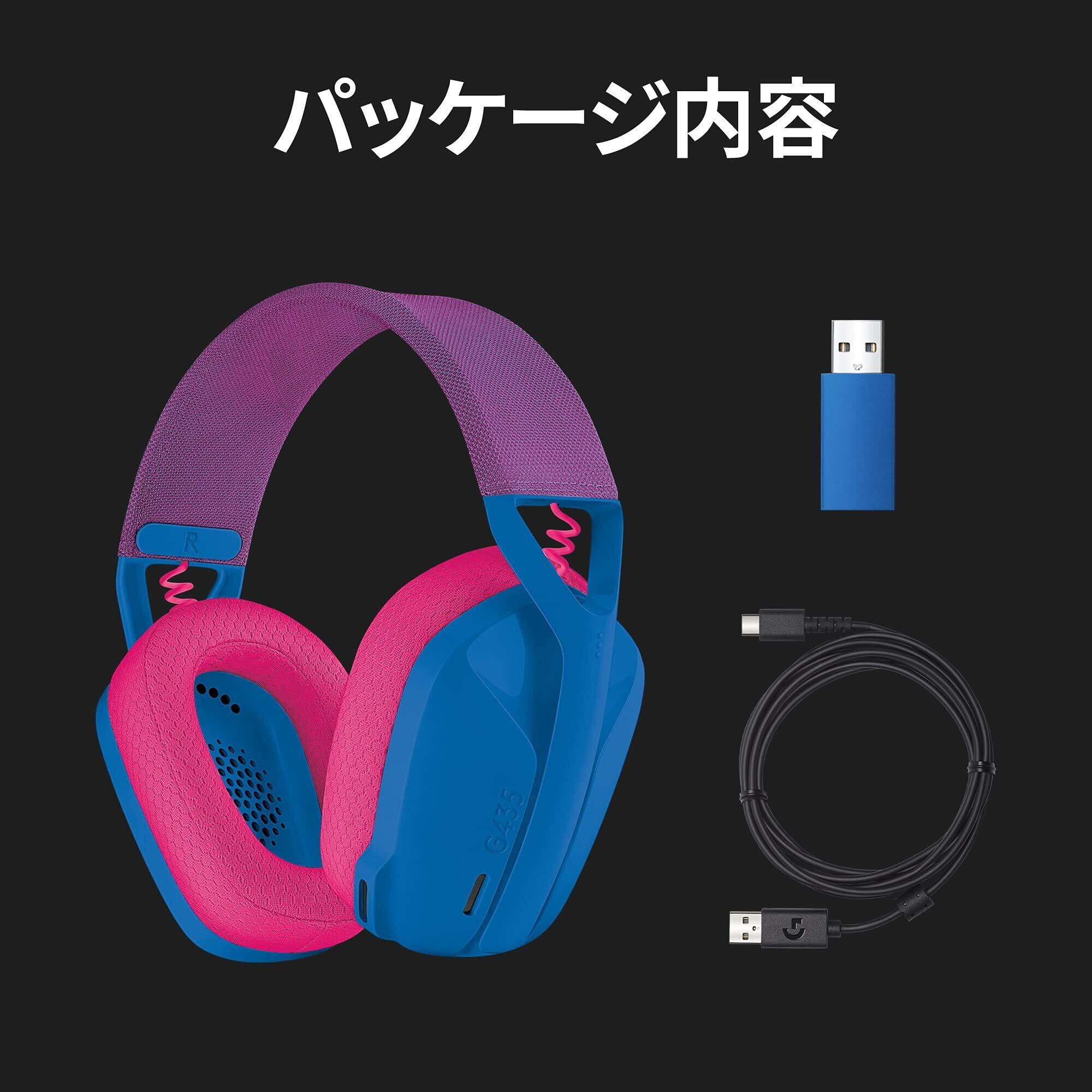 Logicool G ゲーミングヘッドセット G435 ワイヤレス ヘッドセット LIGHTSPEED & Bluetooth 軽量 165g 内蔵マイク 18時間連続使用 USB ドングル Dolby Atmos対応 ヘッドホン PC PS4 PS5 スマホ 対応 G435BL 国内正規品