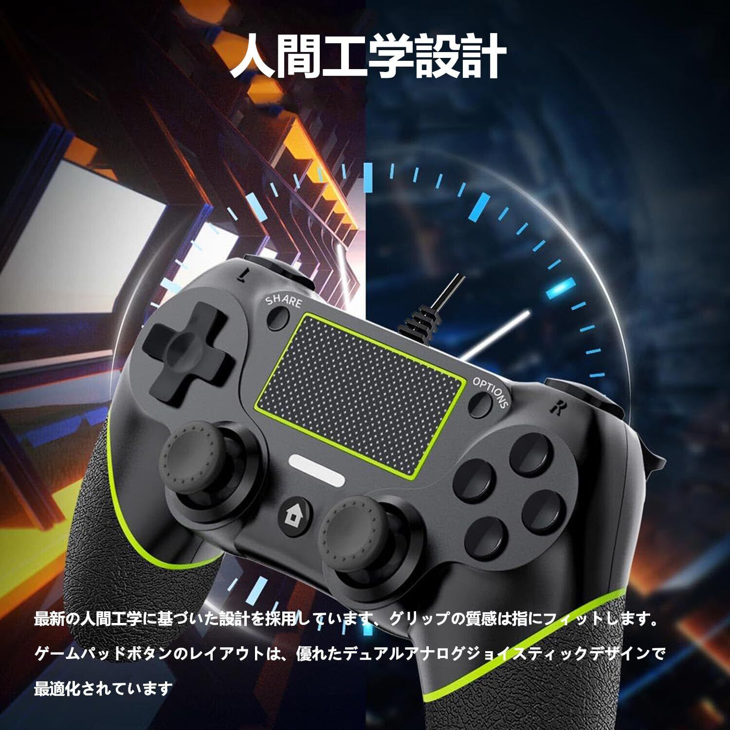 Elnicec PS4用 コントローラー 有線【2025革新モデル】ps4 ゲームパッド USB接続 遅延なし システム対応 人間工学 二重振動 重力感応 機能搭載 高耐久ボタン プレステ4 Pro/Slim P3 Win7/8/10対応 日本語説明書付き(ブラックグリーン)