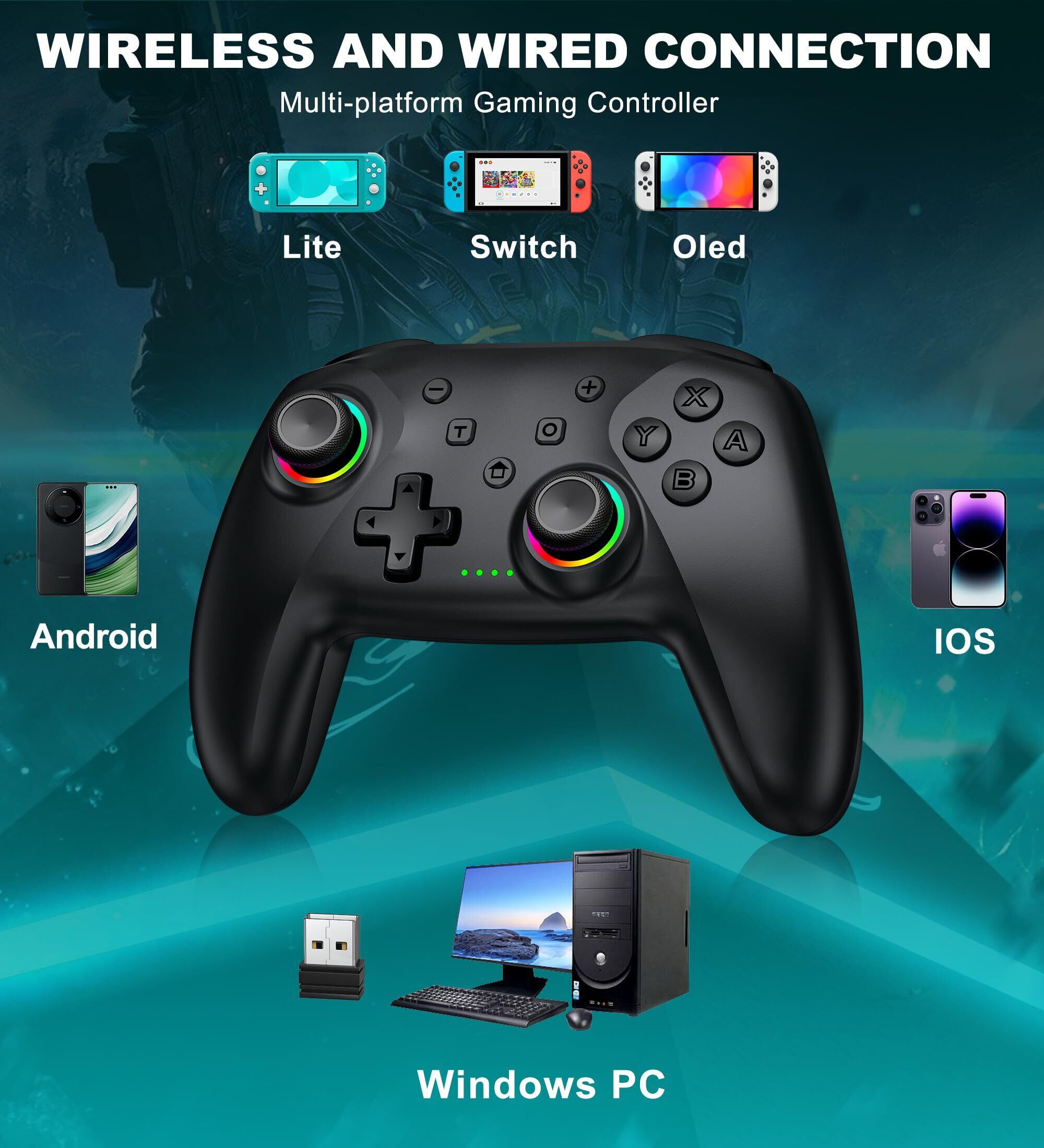 **\PC コントローラー RGBライト 光る マクロ機能 無線 スリープ解除 TURBO連射 1000mAh大容量 プロコン Switch 2/Switch/Lite/OLED/Android/IOS/PC対応 ブラック – あなたのゲームプレイに新たな彩りを!/**